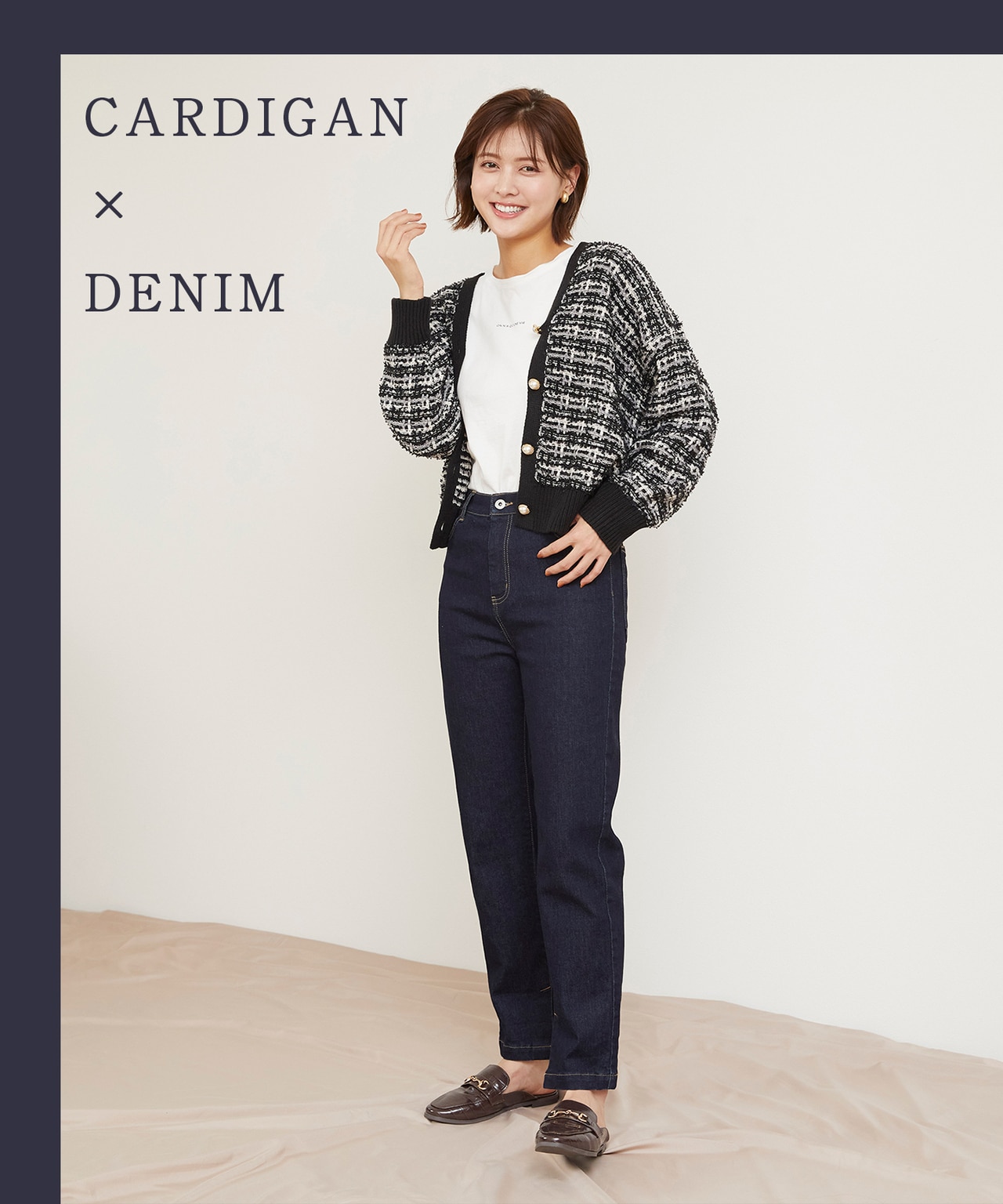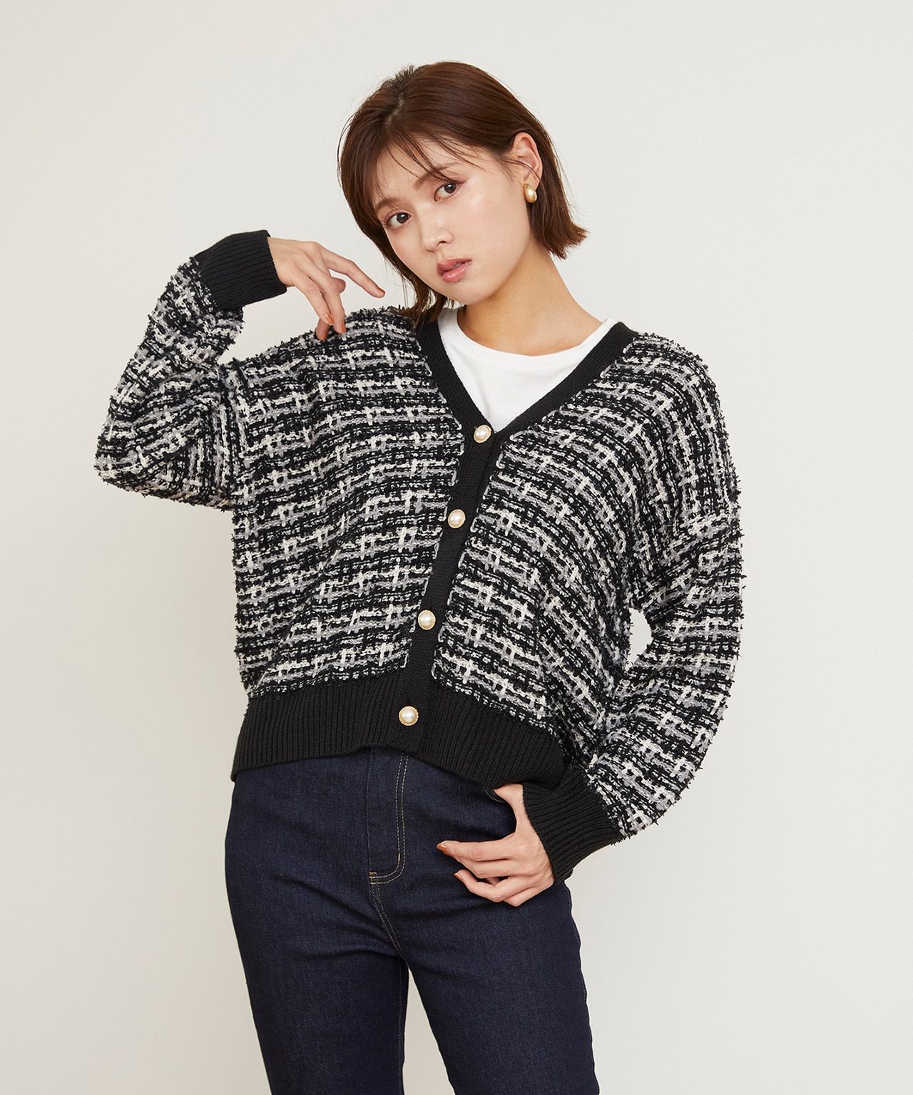 ツイード流行りの今季、気軽に誰でもツイードを取り入れやすいのがカーディガン。