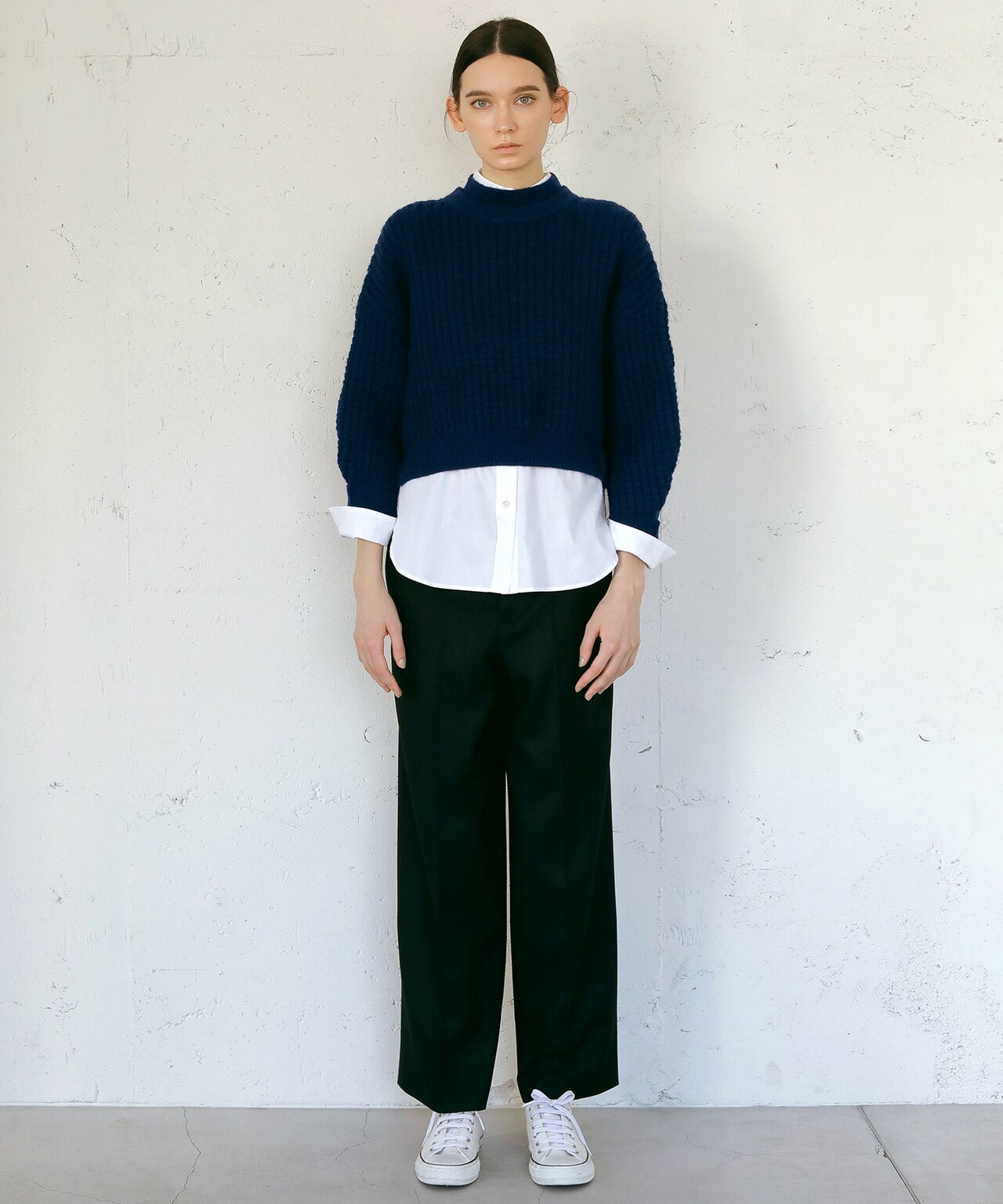 創業80年を超える一宮の梳毛メーカー“東和毛織”で紡績をした日本の素材を使用したニットコレクション、日本最大のウール産地である、尾州一宮市の中伝毛織で作られた最高級リバーのコートコレクションはそれぞれ特別な逸品に仕上がっています。