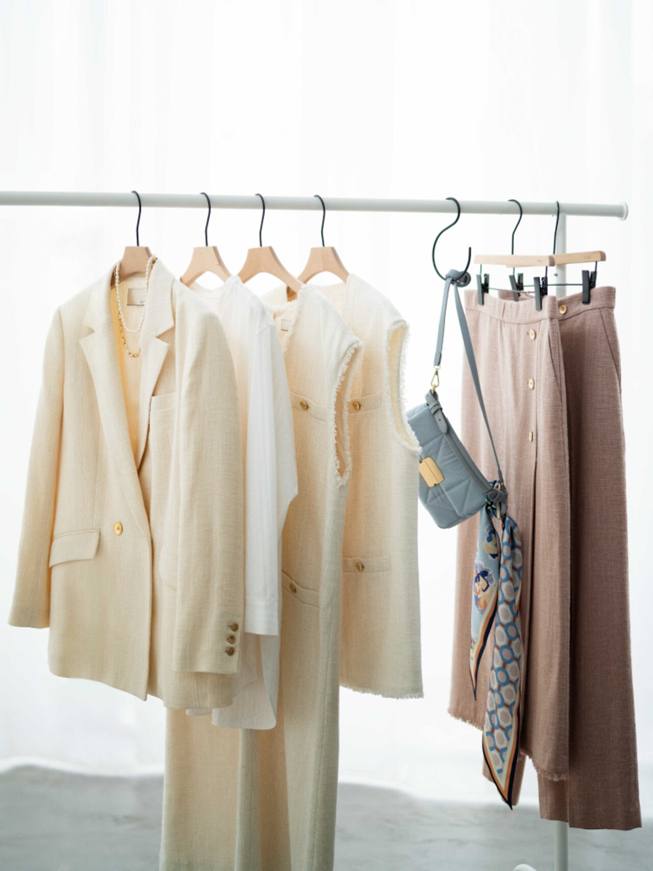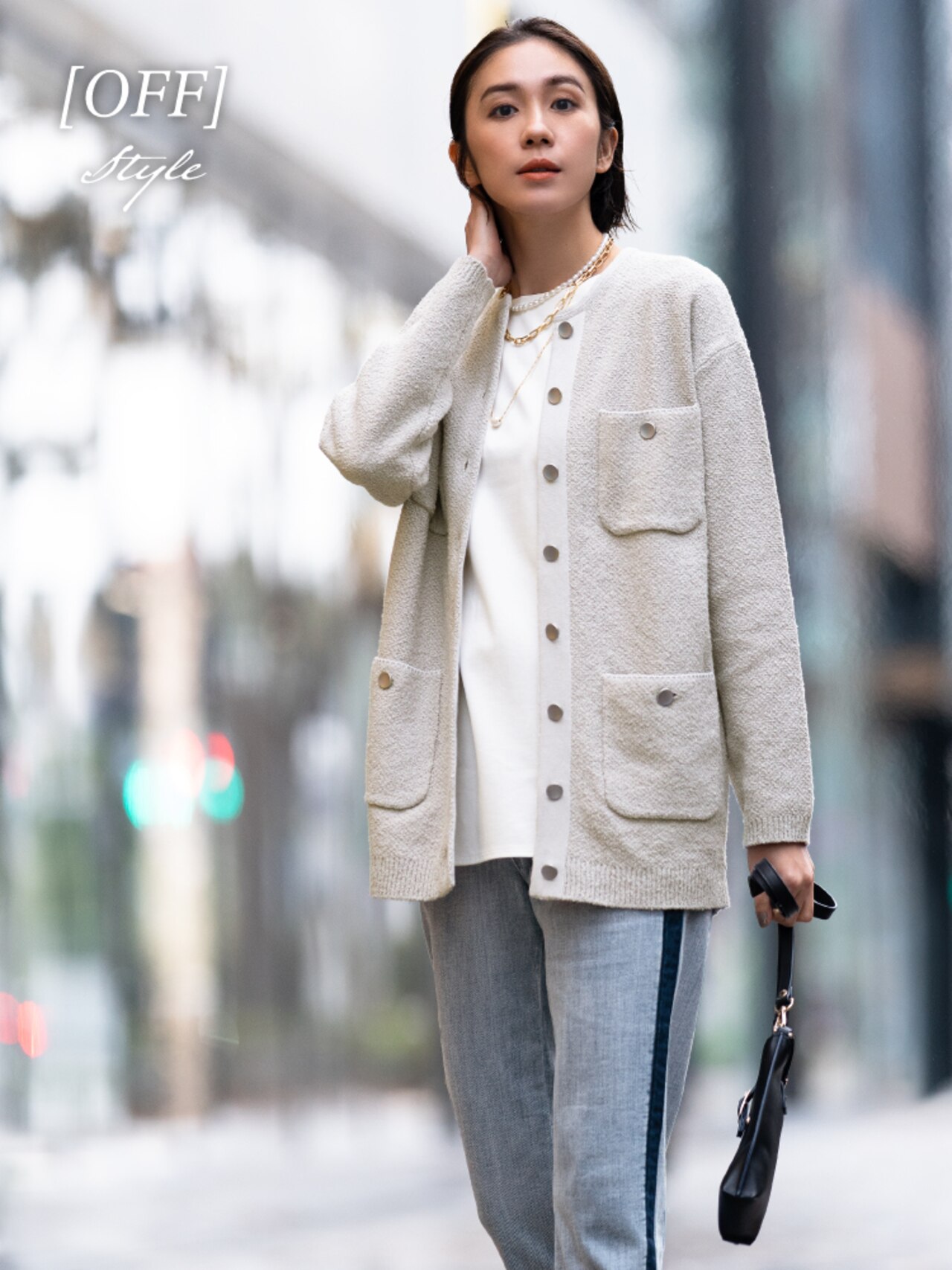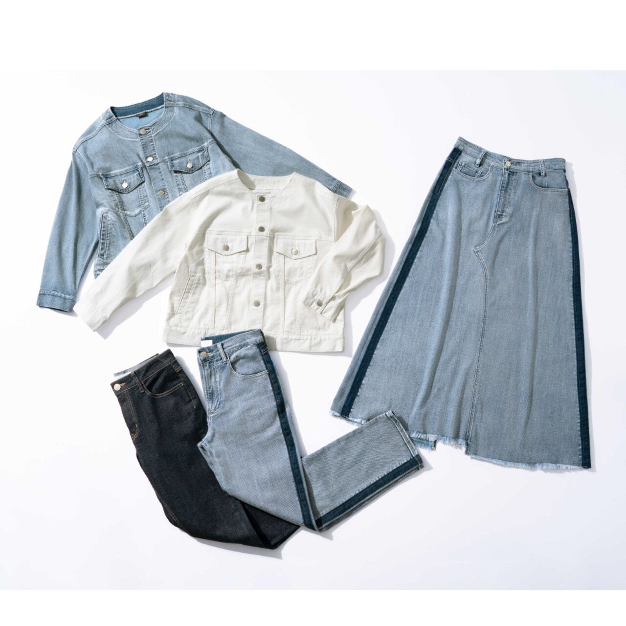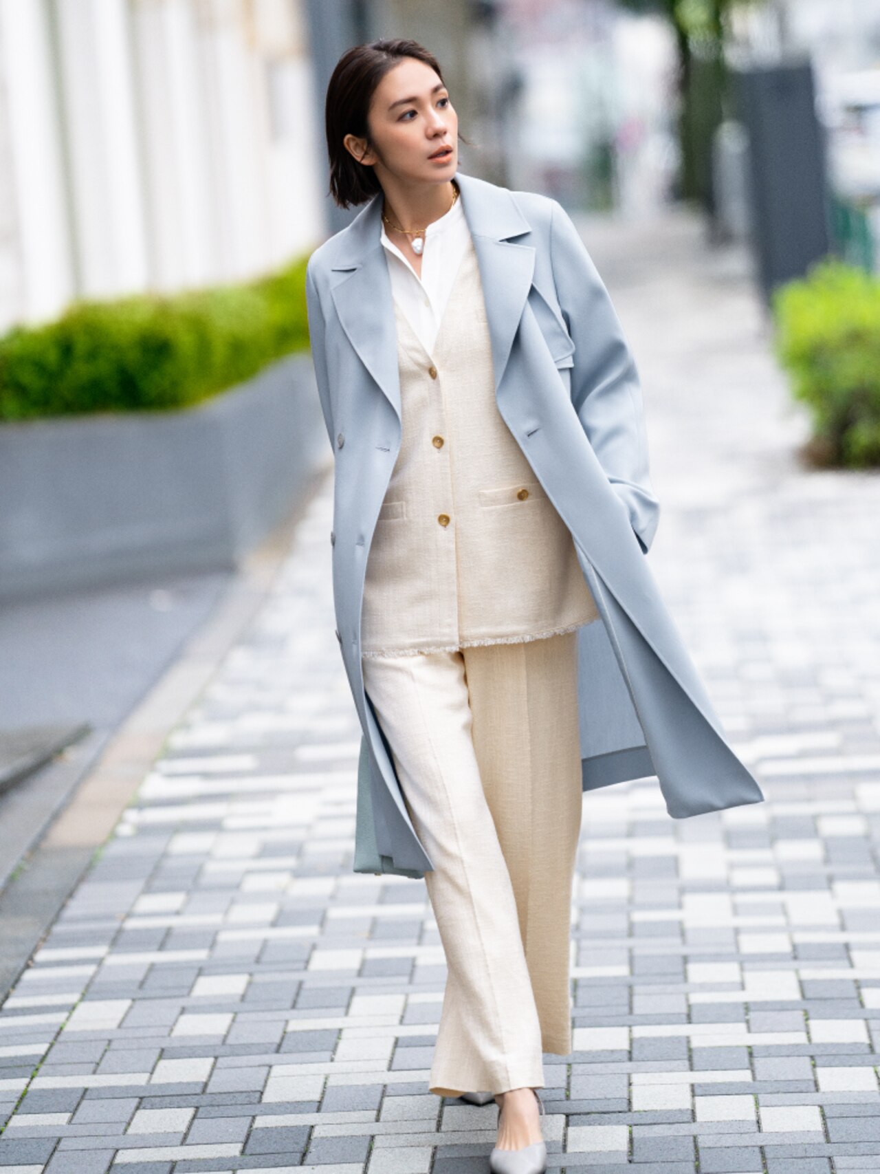 2月のカラーは、アクア、アビスブルー、ネイビーと静かな水面を連想させるカラーに、オフとシャンパンベージュを合わせたもの。今季は淑女気分で着こなして。