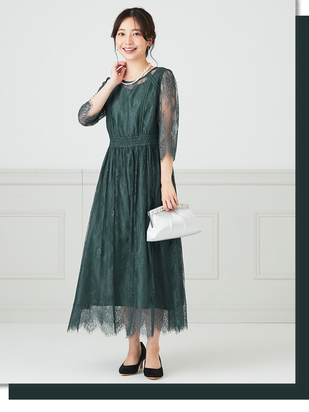 深みのあるグリーンはクリスマスなどシーズナルなイベントにぴったりなので、冬のパーティースタイルにおすすめです。