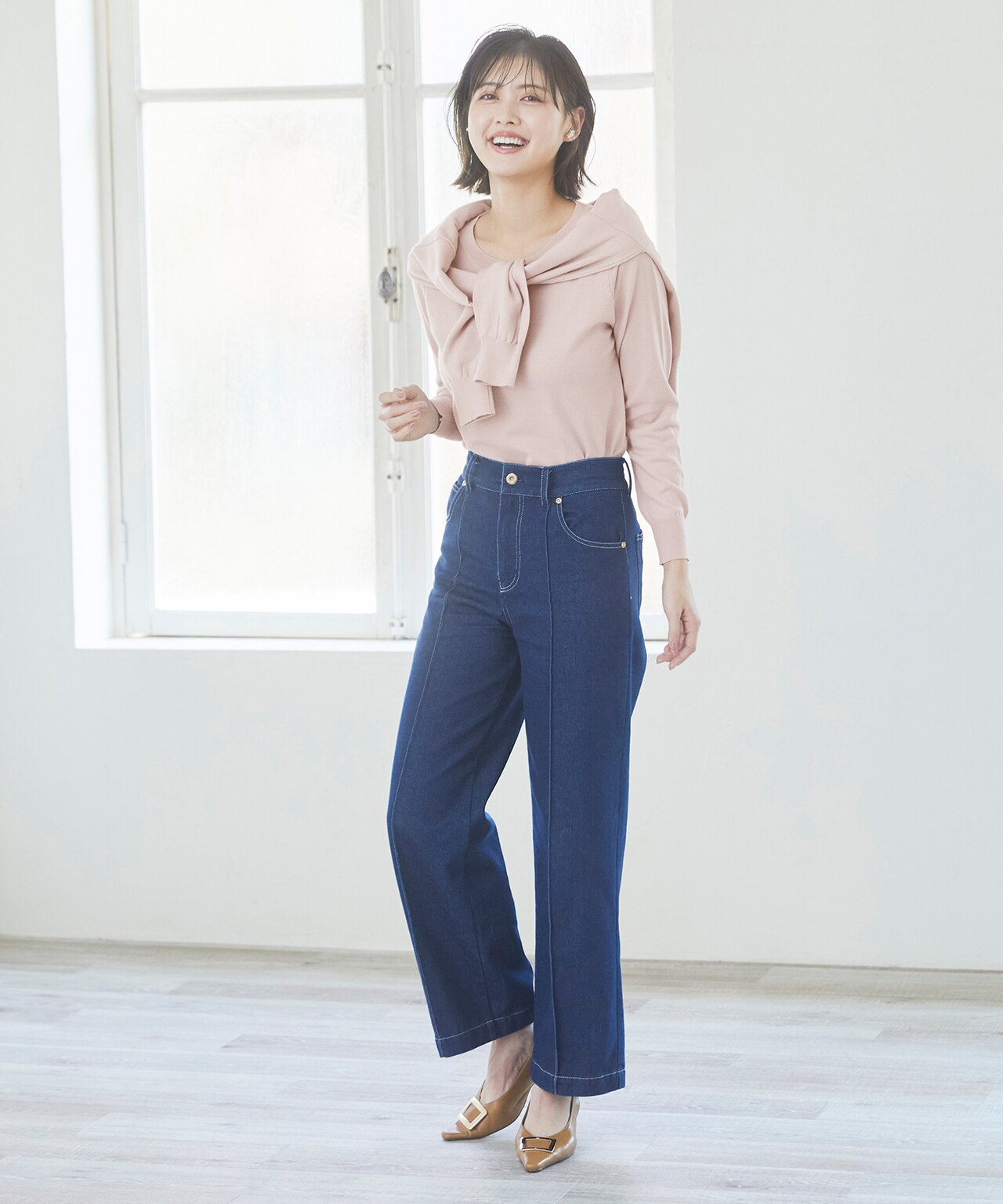 春らしいカラーリングが気分を上げてくれるツインセット。 それぞれ単品使いもでき長い期間活躍してくれるのが嬉しい。 ボタンはパールになっていて女性らしさを格上げ。お仕事にも活躍しそう!