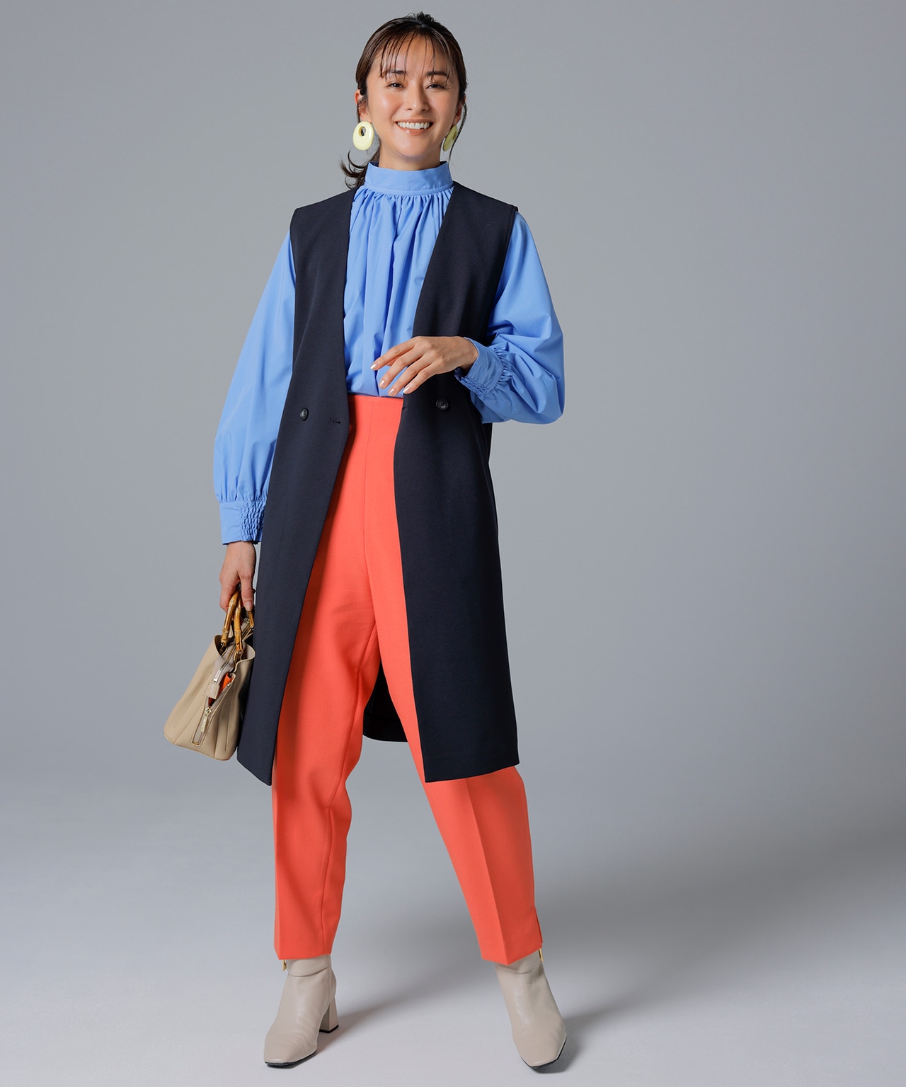 コーディネートの仕上げ力があるからカラーONカラーにも挑戦。