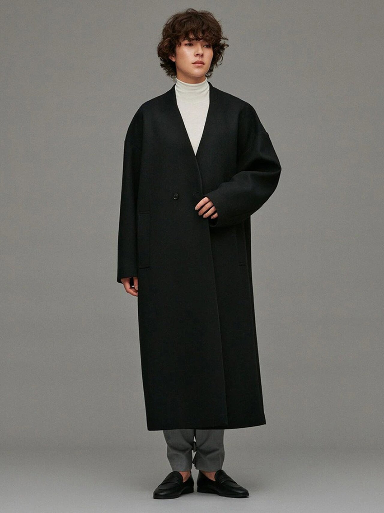 こちらのコート自体がオーバーシルエットなので、中はすっきりとまとめるのがバランス良く着られるかなと思います。