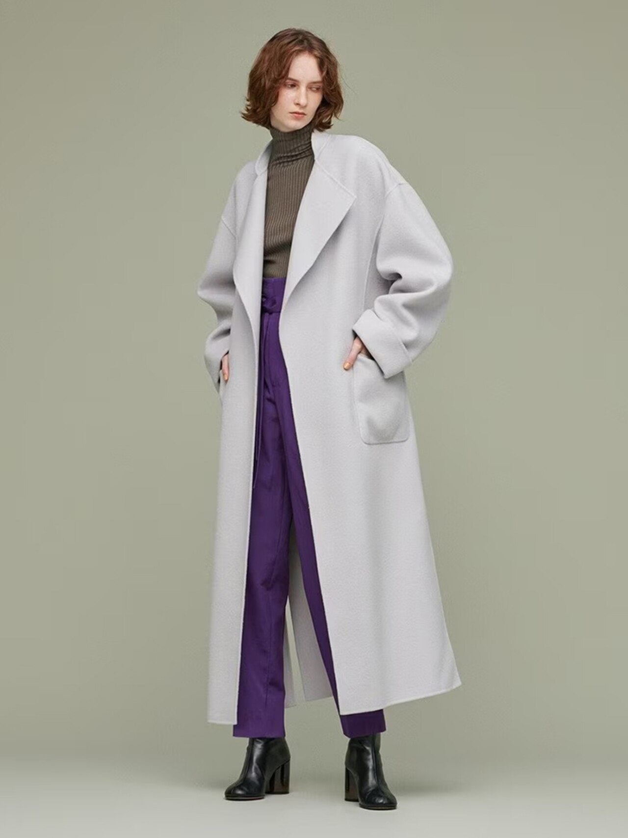 ペールトーンのオーバーサイズコートは着膨れして見えるのではないかと心配していたのですが、無用な心配でした。実際に着てみるとラベンダーモーブの絶妙な色合いのおかげで顔映りもよく、スタイリッシュな印象になります。パーソナルカラーサマーの私にとってベストなお色でした。