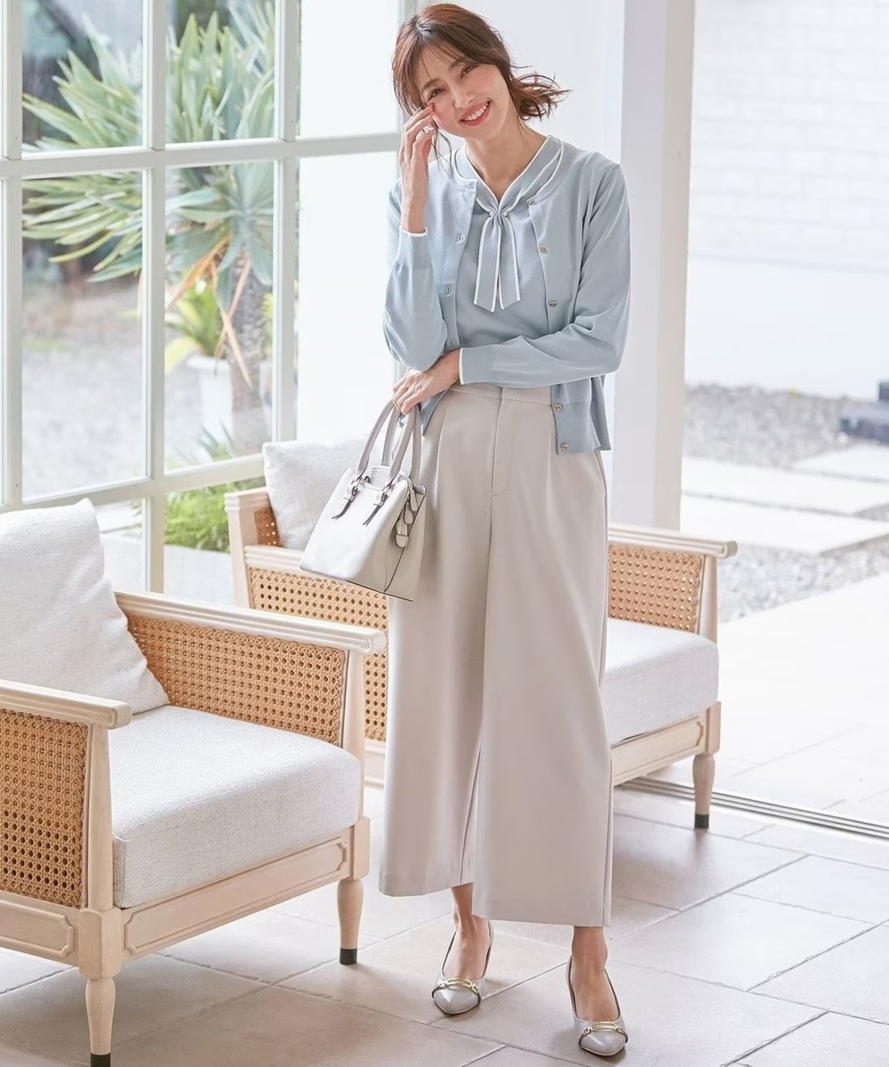 ハンサム顔のパンツを着れば気分もシャキッと仕事モードに。ベーシックカラーのパンツには着映えるデザイントップスを合わせて華やかさも忘れずに!長時間のデスクワークでも快適に過ごせるワイドパンツは特におすすめです。