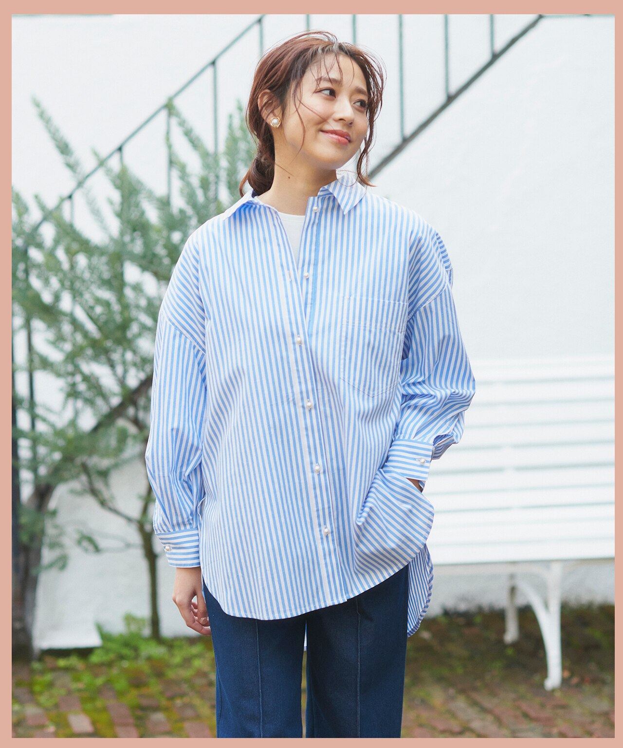 パールボタンがポイントのビッグシルエットのシャツが登場!