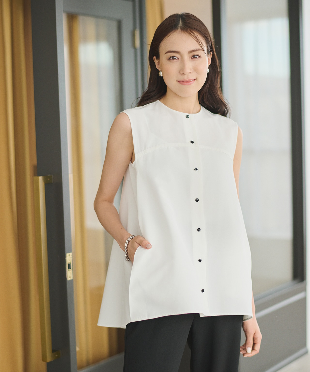 【ANSWER for シティライフ】ヨークデザインノースリーブブラウス【ANSWER for シティライフ】ヨークデザインノースリーブブラウス#Newans¥17,930(税込)→¥8,965(税込)腕の開きが狭いデザインは骨格ウェーブの華奢見せポイントの1つ。
