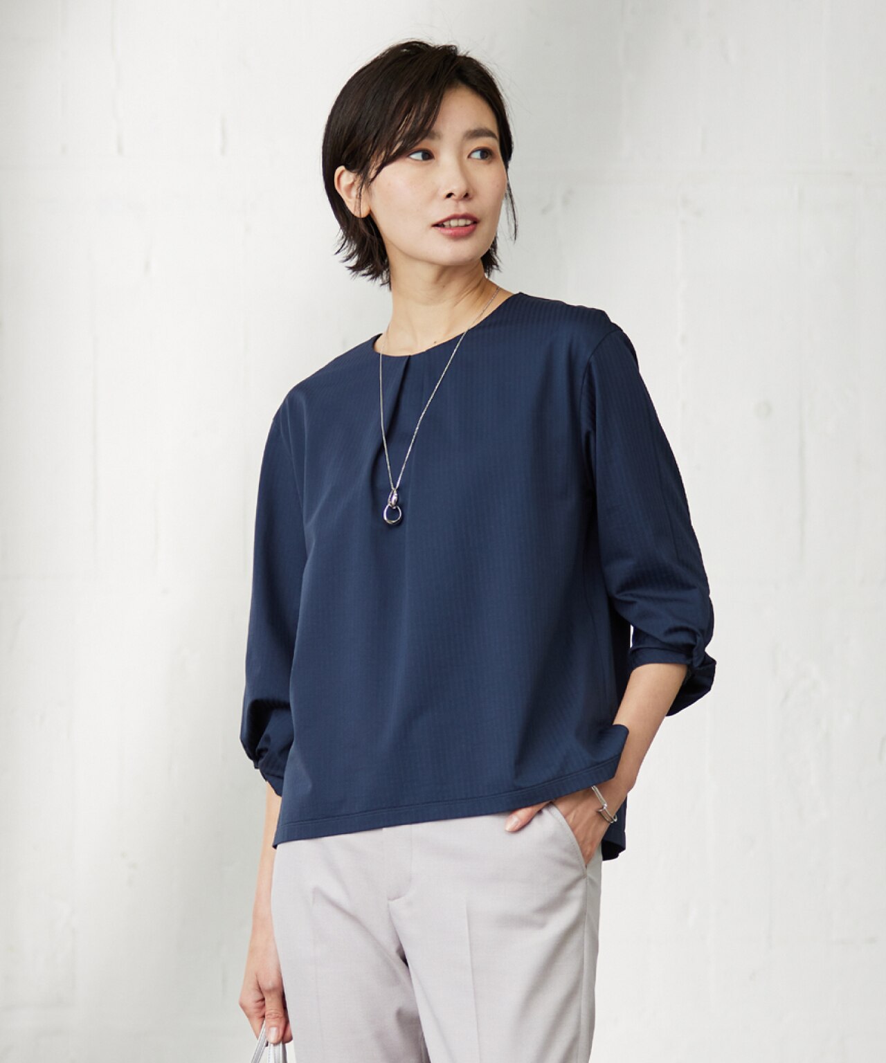 【WEB限定】 ピンストライプジャージー ボリュームスリーブ カットソー
