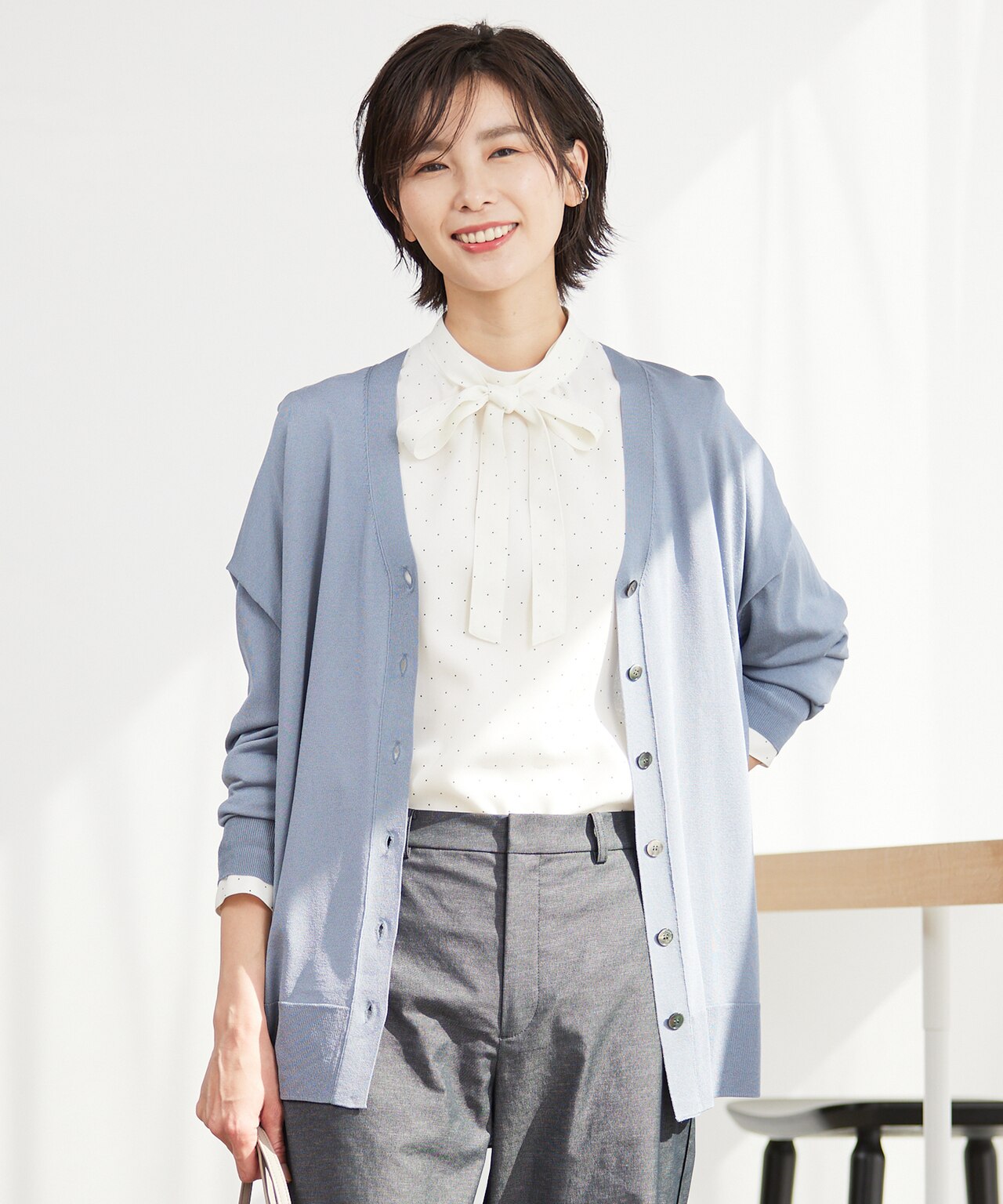 【洗える】 シルキーレーヨンストレッチ Vネック カーディガン