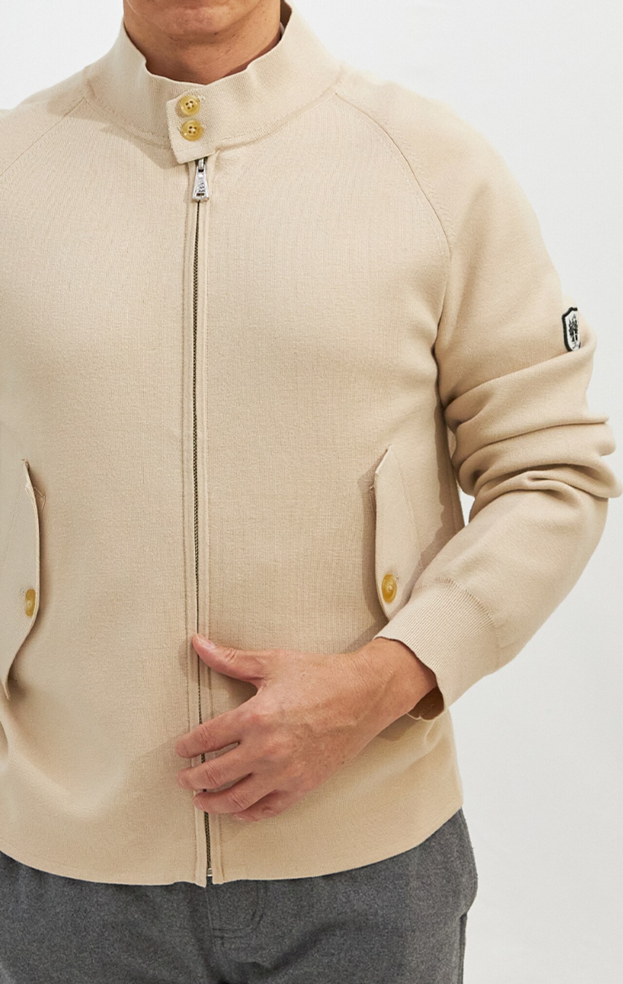 毎シーズン人気のG9型ブルゾンですが、本格仕様のブルゾン見えでありながら、春先に気軽に羽織りやすいニット仕立てに落とし込みました。