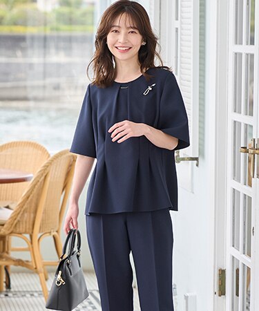 上下ワンツーで着るだけで素敵に決まる!セレモニーからお仕事、お出かけまで幅広いシーンで着回せるセットアップに半袖Ver.が登場しました。初夏らしい爽やかな新色のライトブルーは必見♪