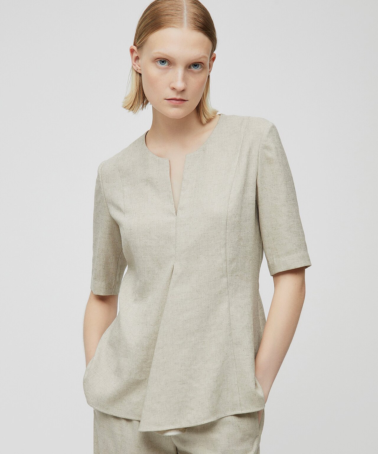 - IRIS / ラウンドネックブラウス/BEIGE,
