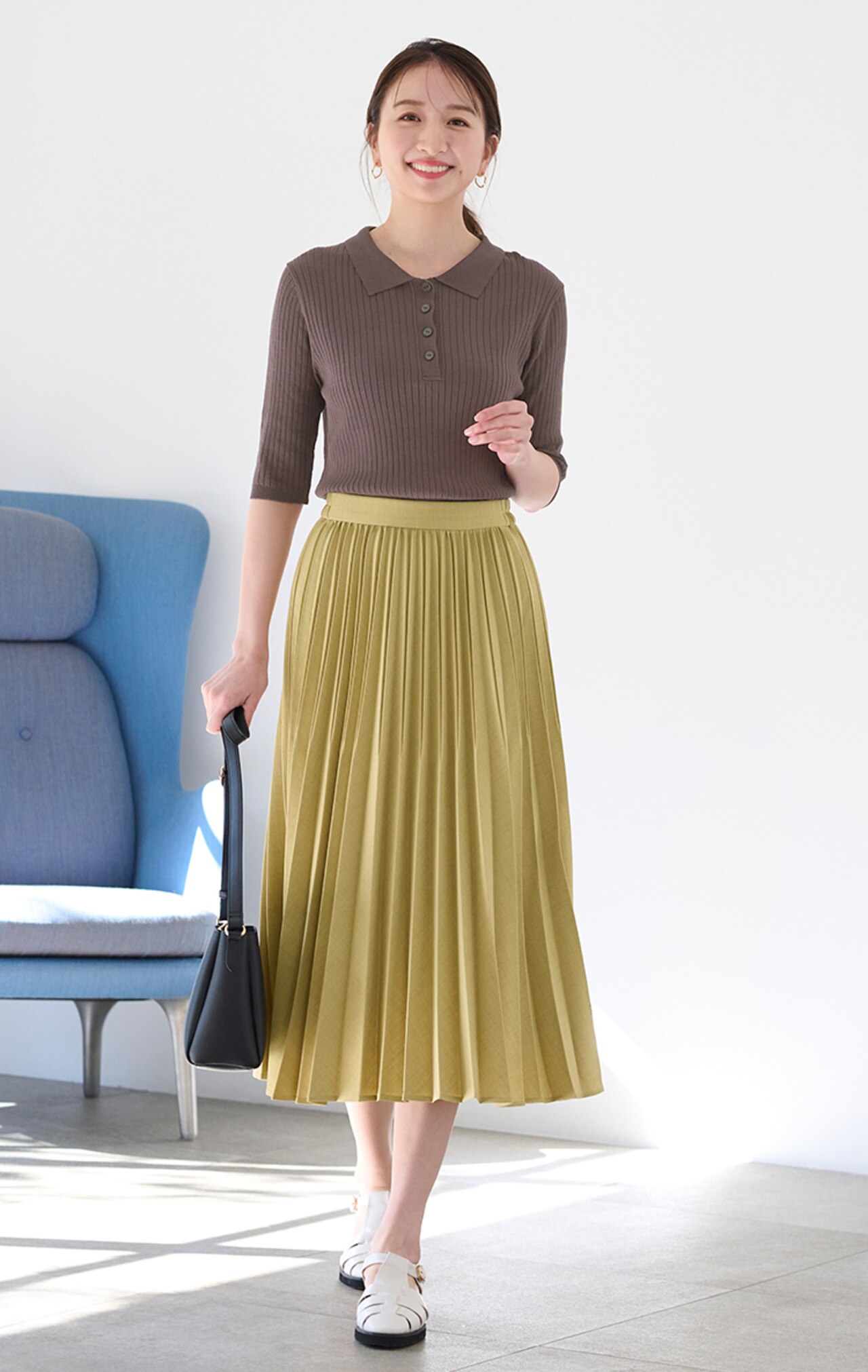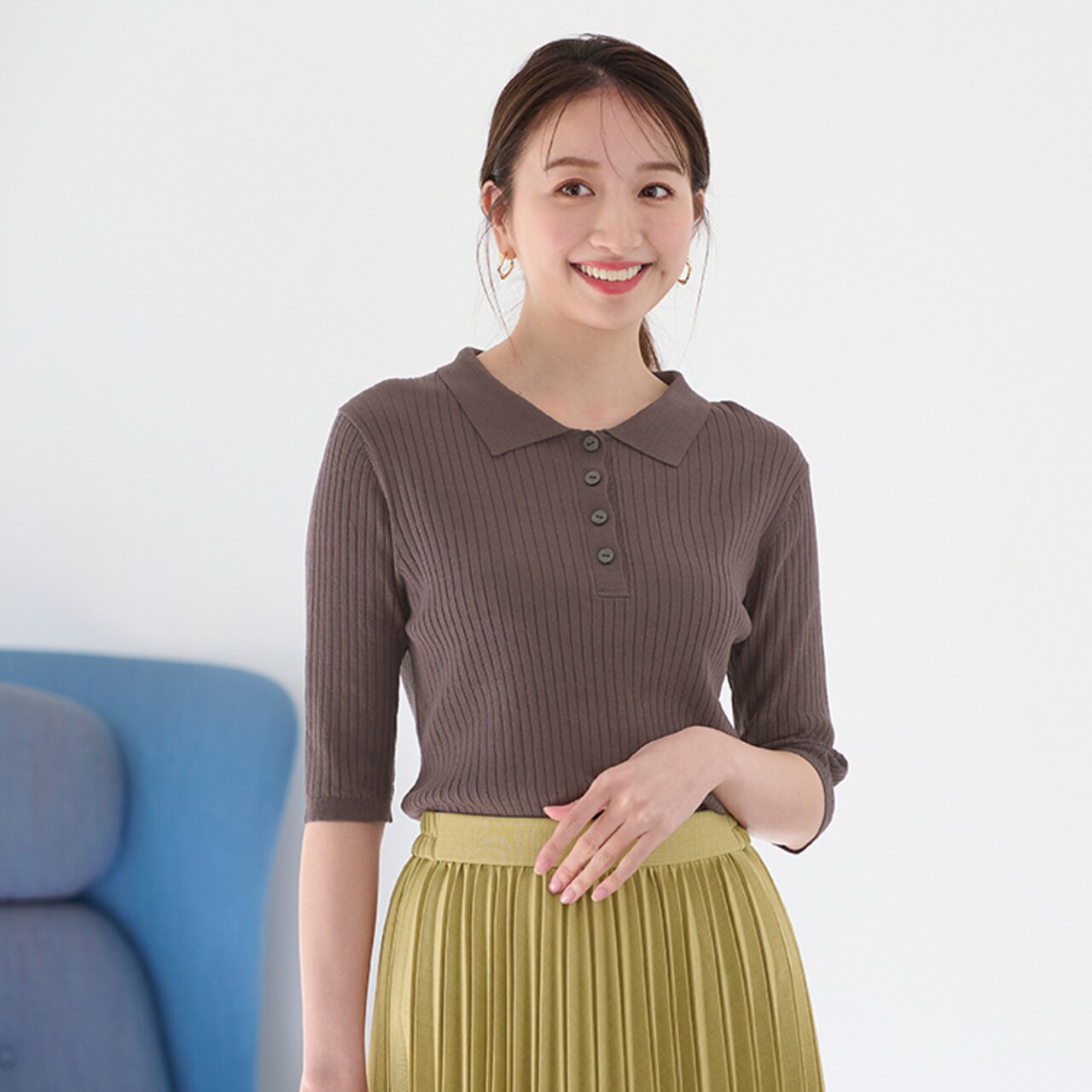 トレンドの衿付きニットはボタンを閉じてプレッピーな印象に、または外して抜け感のある着こなしをしてもサマになる優秀アイテム!