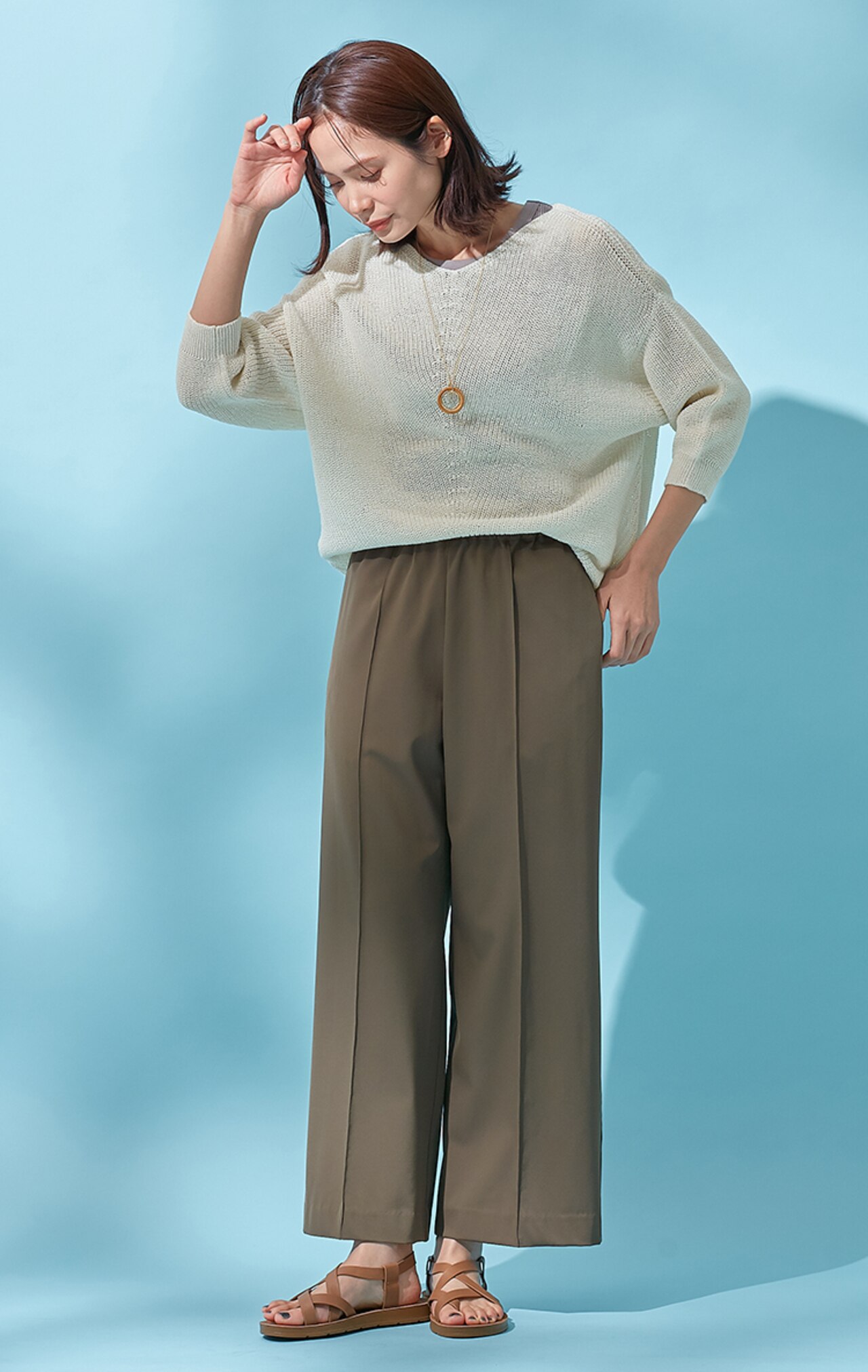 ボトムもゆったりとしたシルエットを合わせることで、統一感のあるリラクシースタイルが完成。