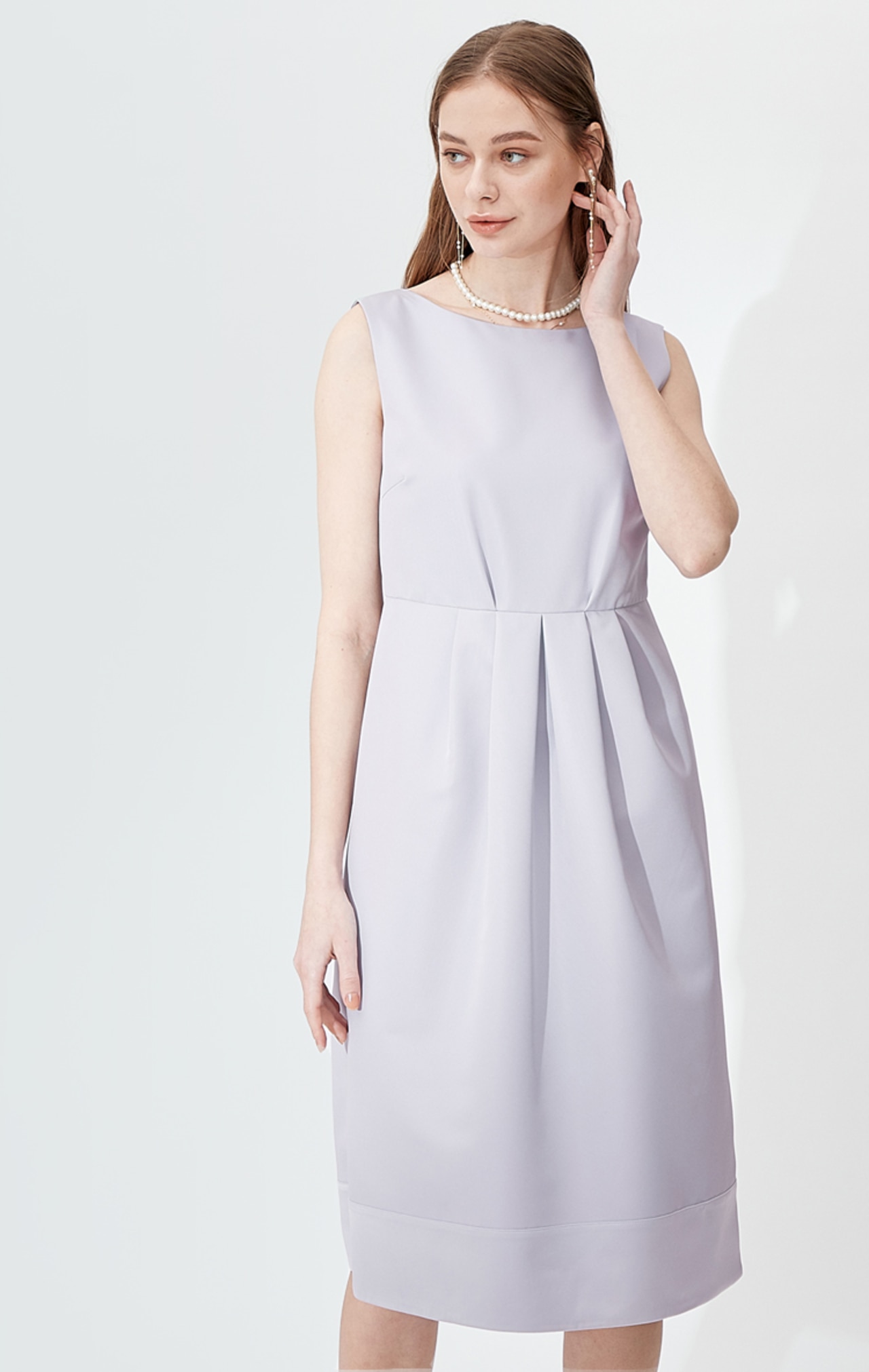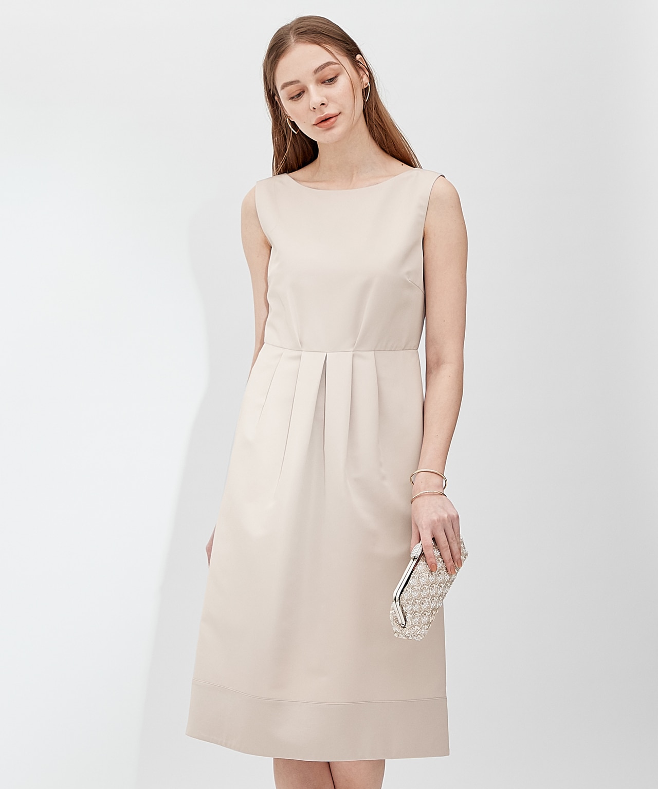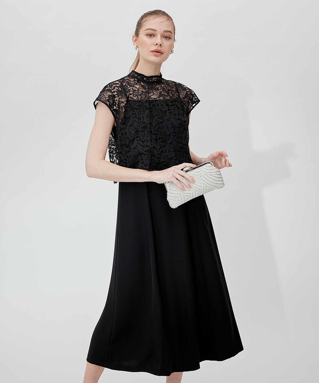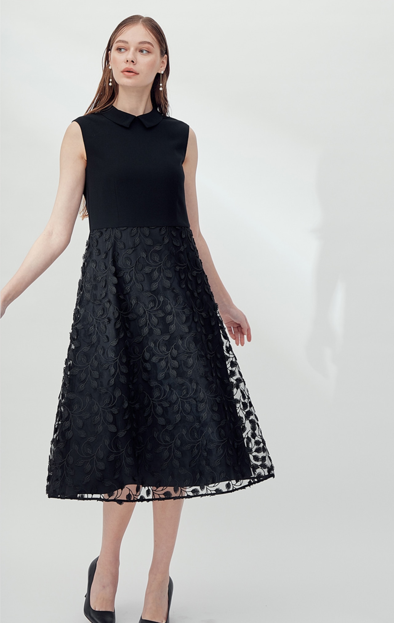 透かしレースのノースリーブドレスに