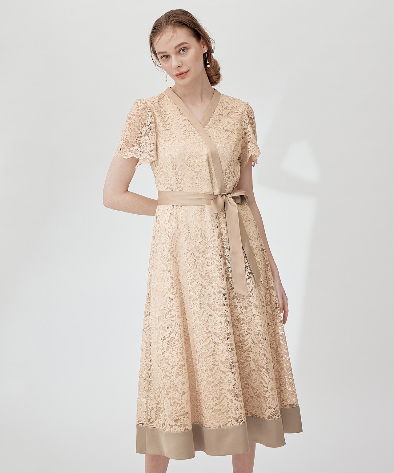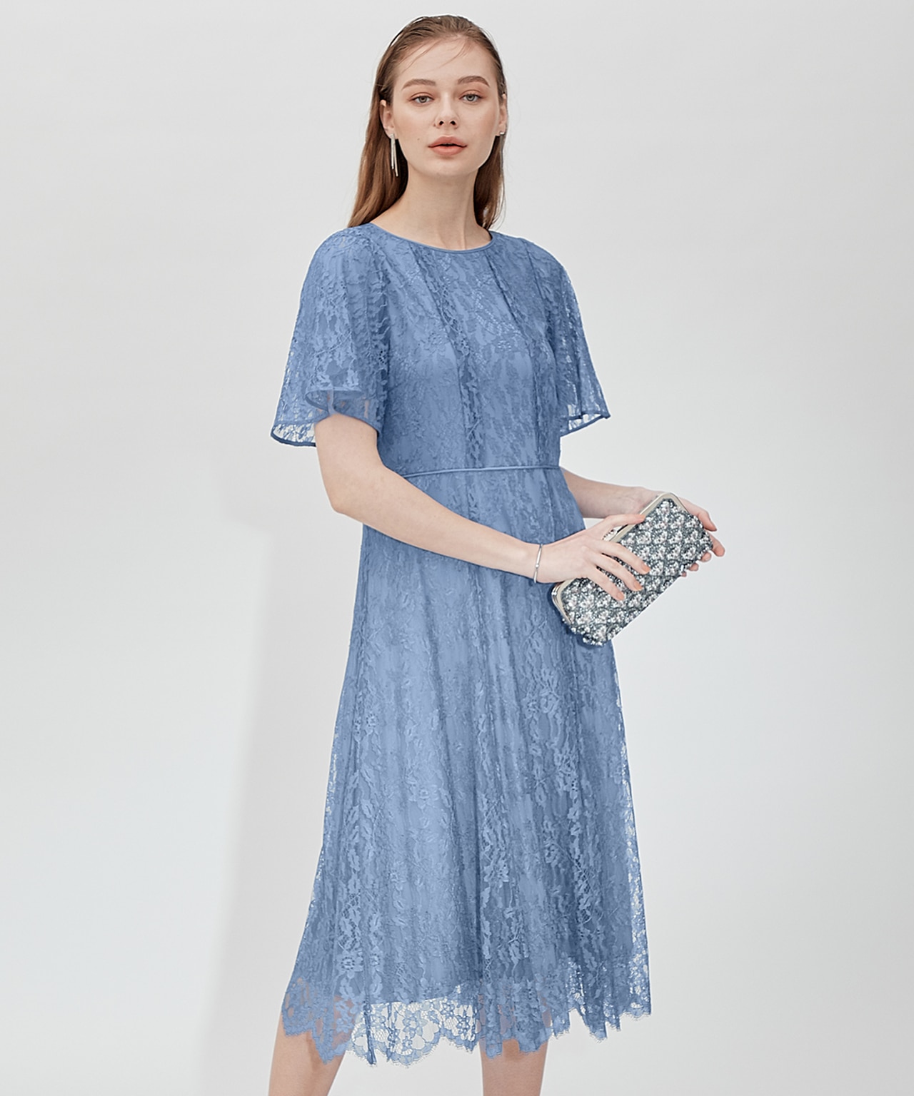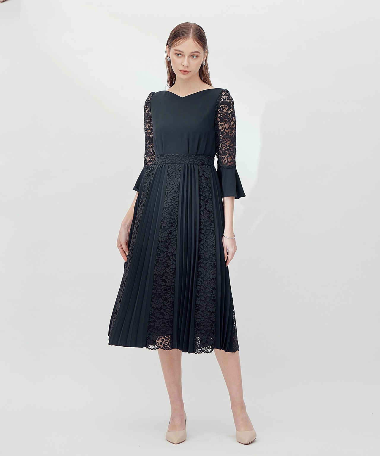 透かしレースのノースリーブドレスに