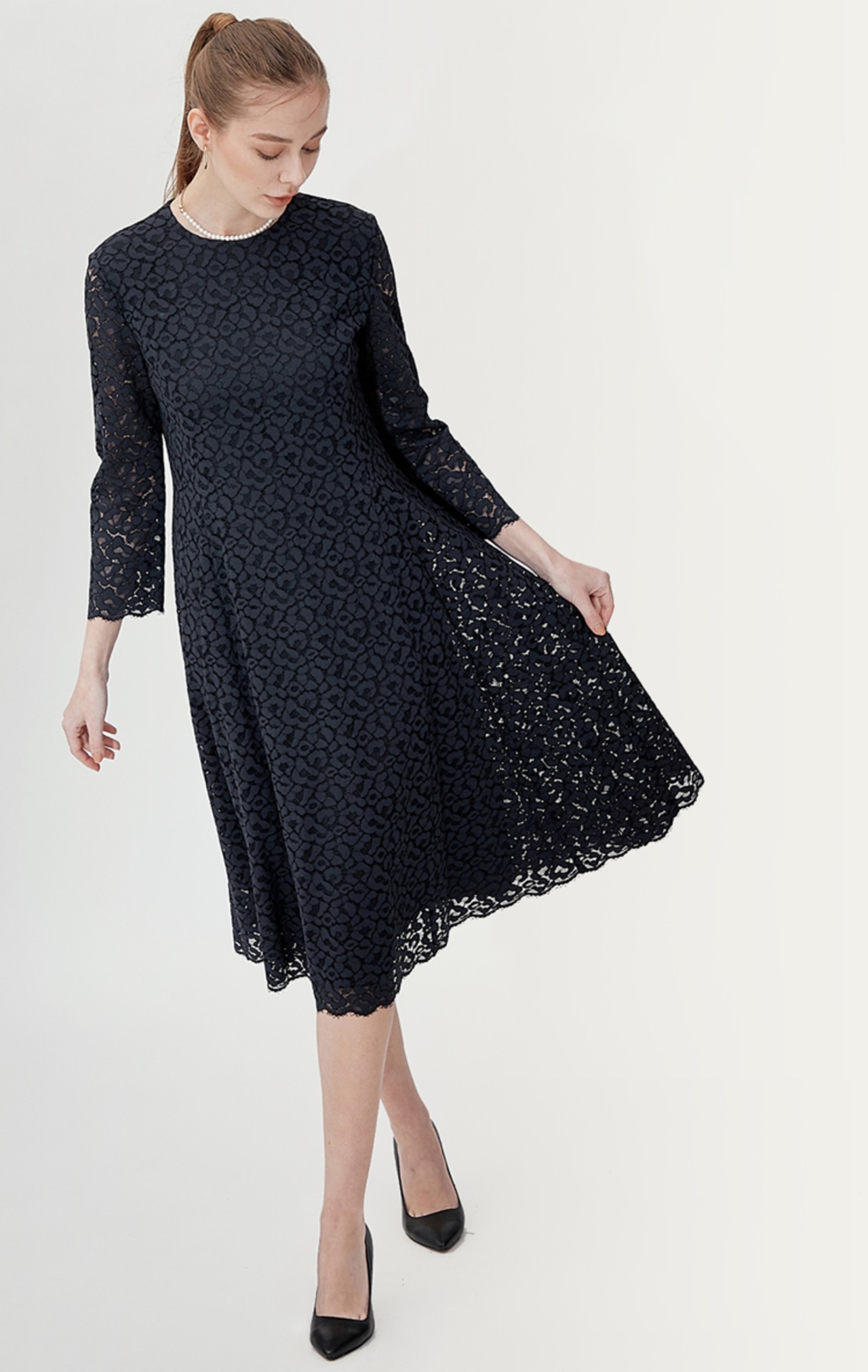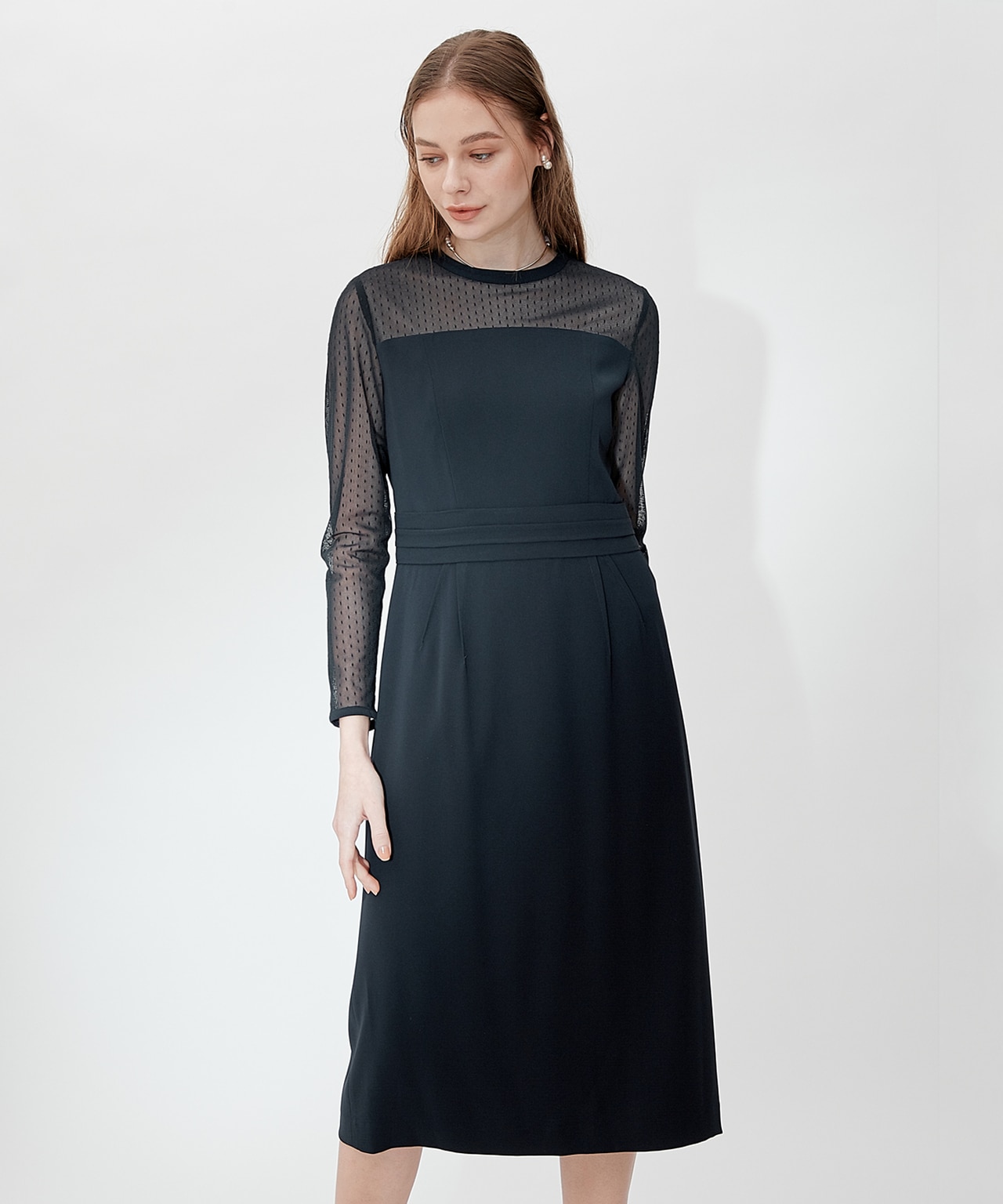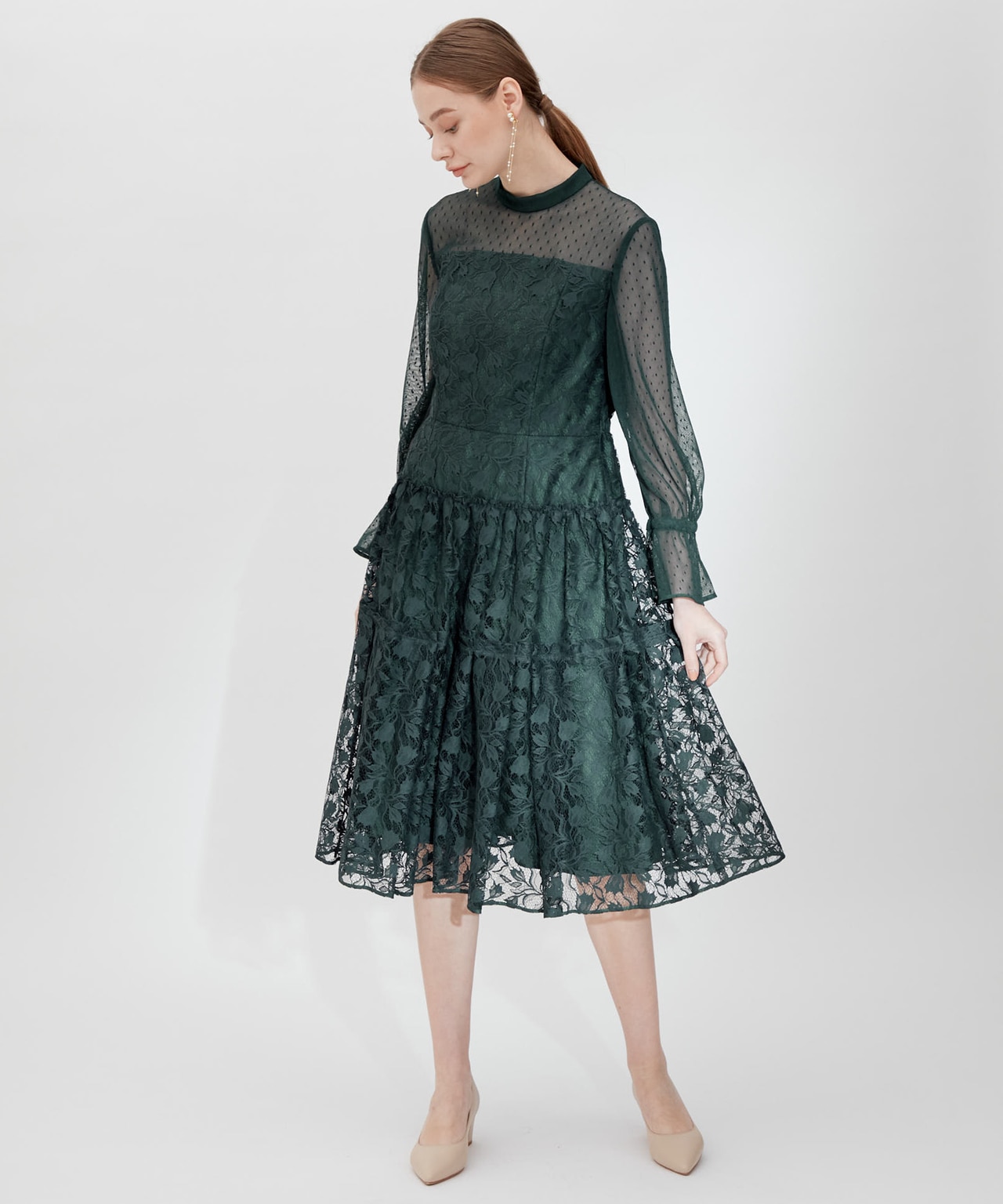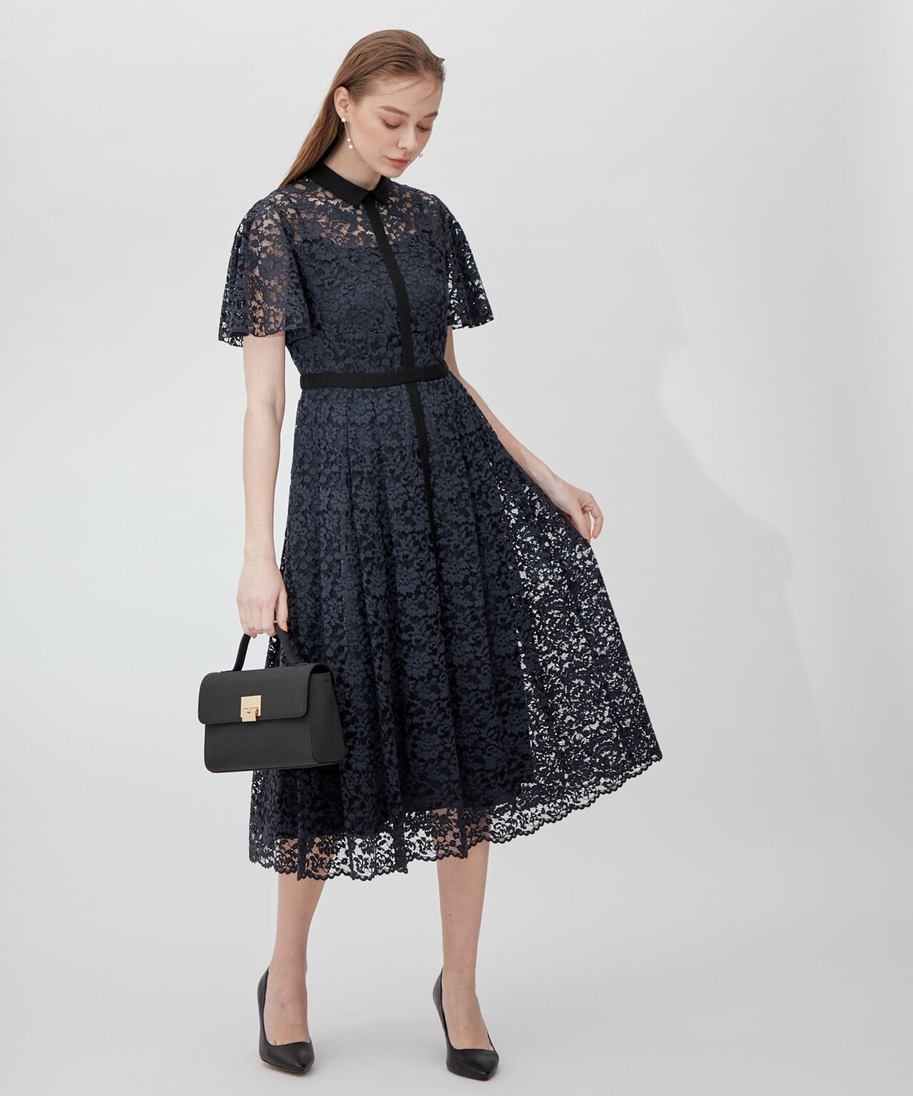 透かしレースのノースリーブドレスに
