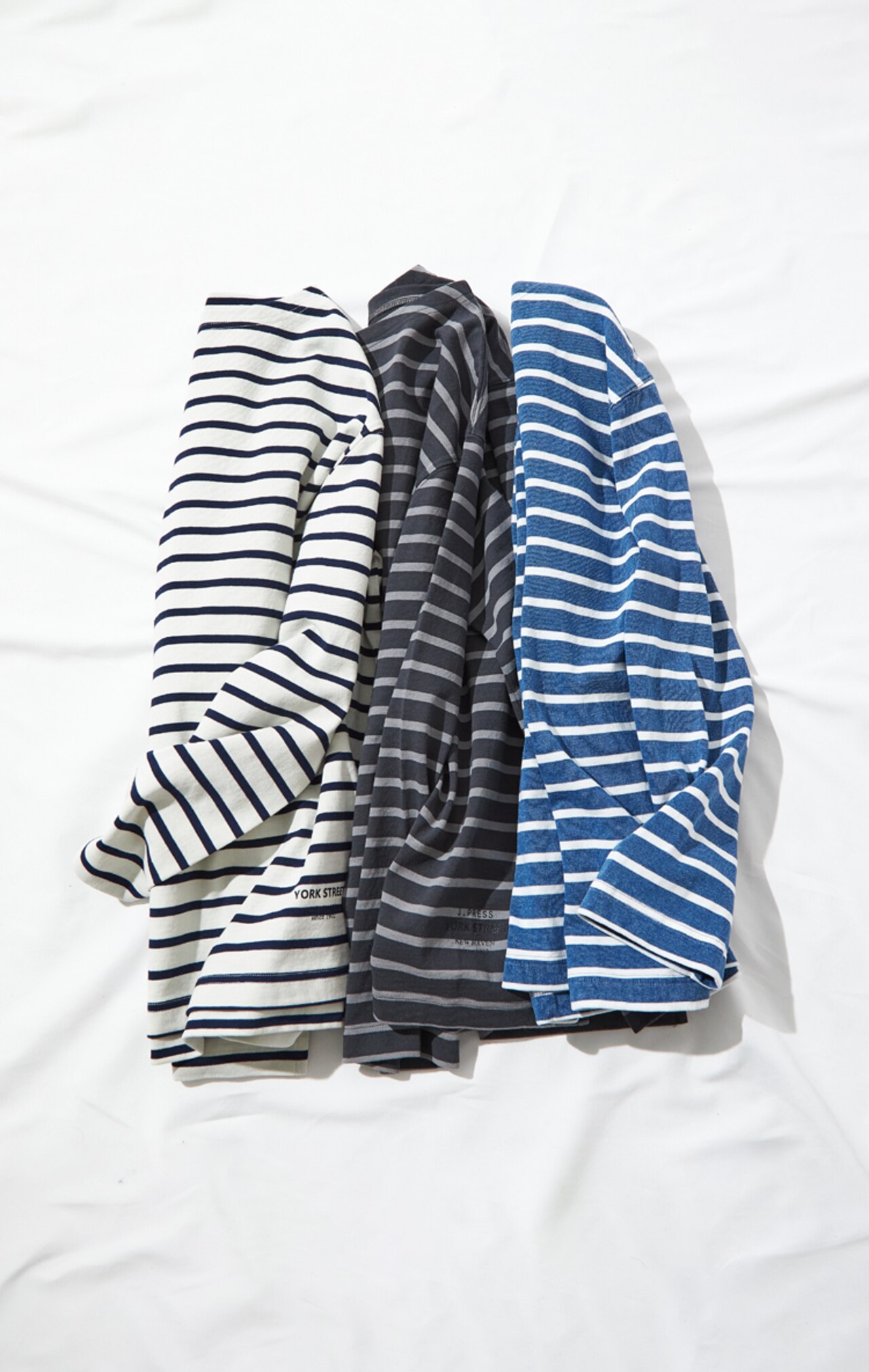 しっかりと目の詰まった生地は程よい肉感とハリ感を備え一枚でもシャツと合わせてでも使い勝手の良い一枚となっております。