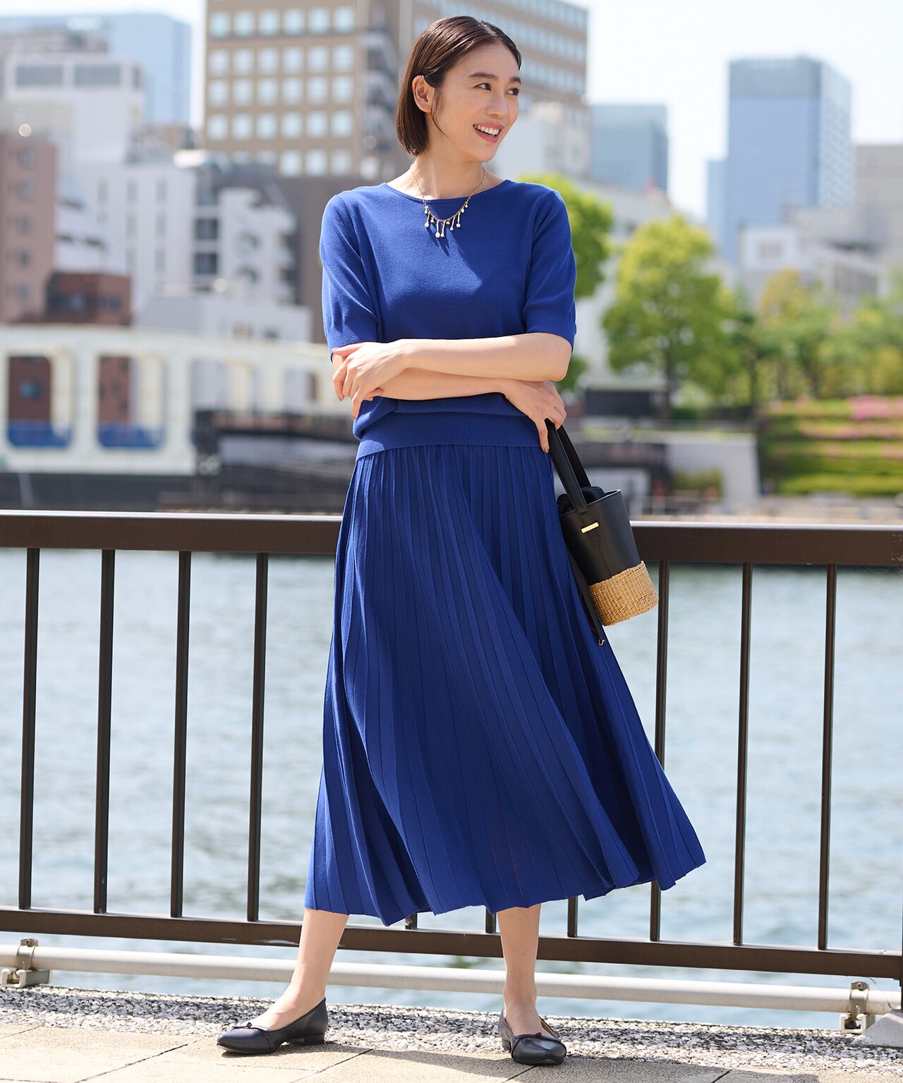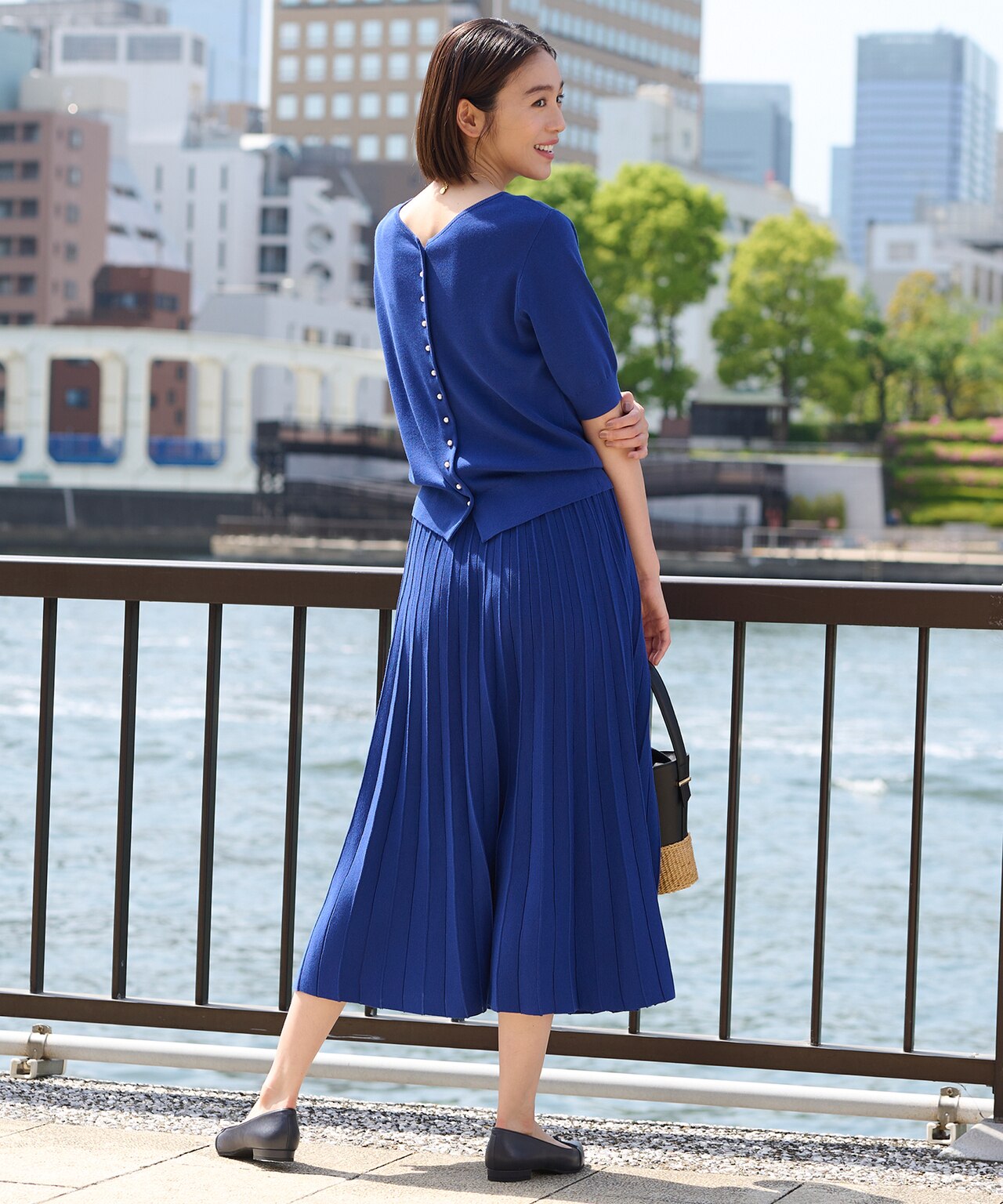 いつも人気のニットセットアップ。トップスは前後着用が可能、スカートはプリーツ調のデザインで、上下別々でも着て頂ける着回し力抜群のアイテム。