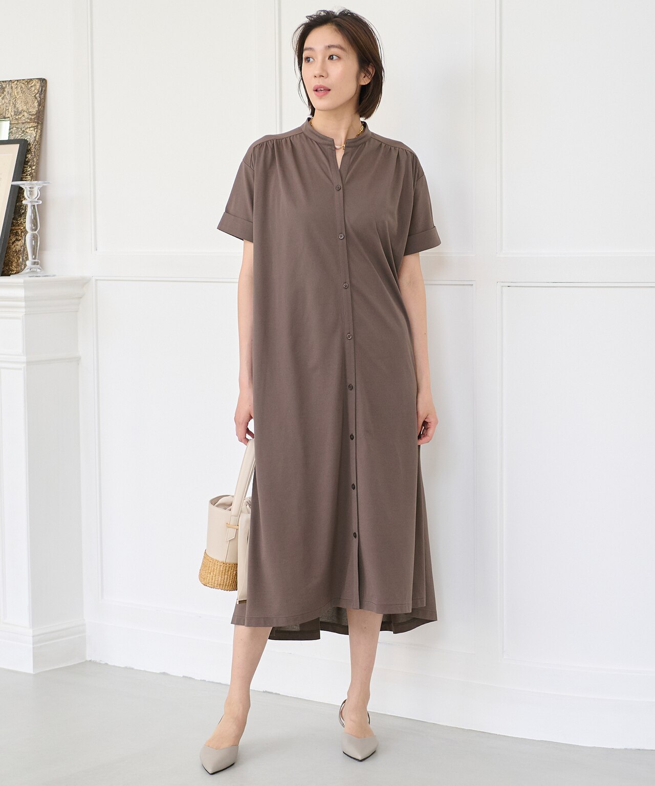 さっと着るだけでスタイリングが決まるワンピース。程よくゆとりのある楽な着心地と、素材の凹凸感が映えるデザインが魅力。ワンピースワンピース自由区¥23,980(税込)