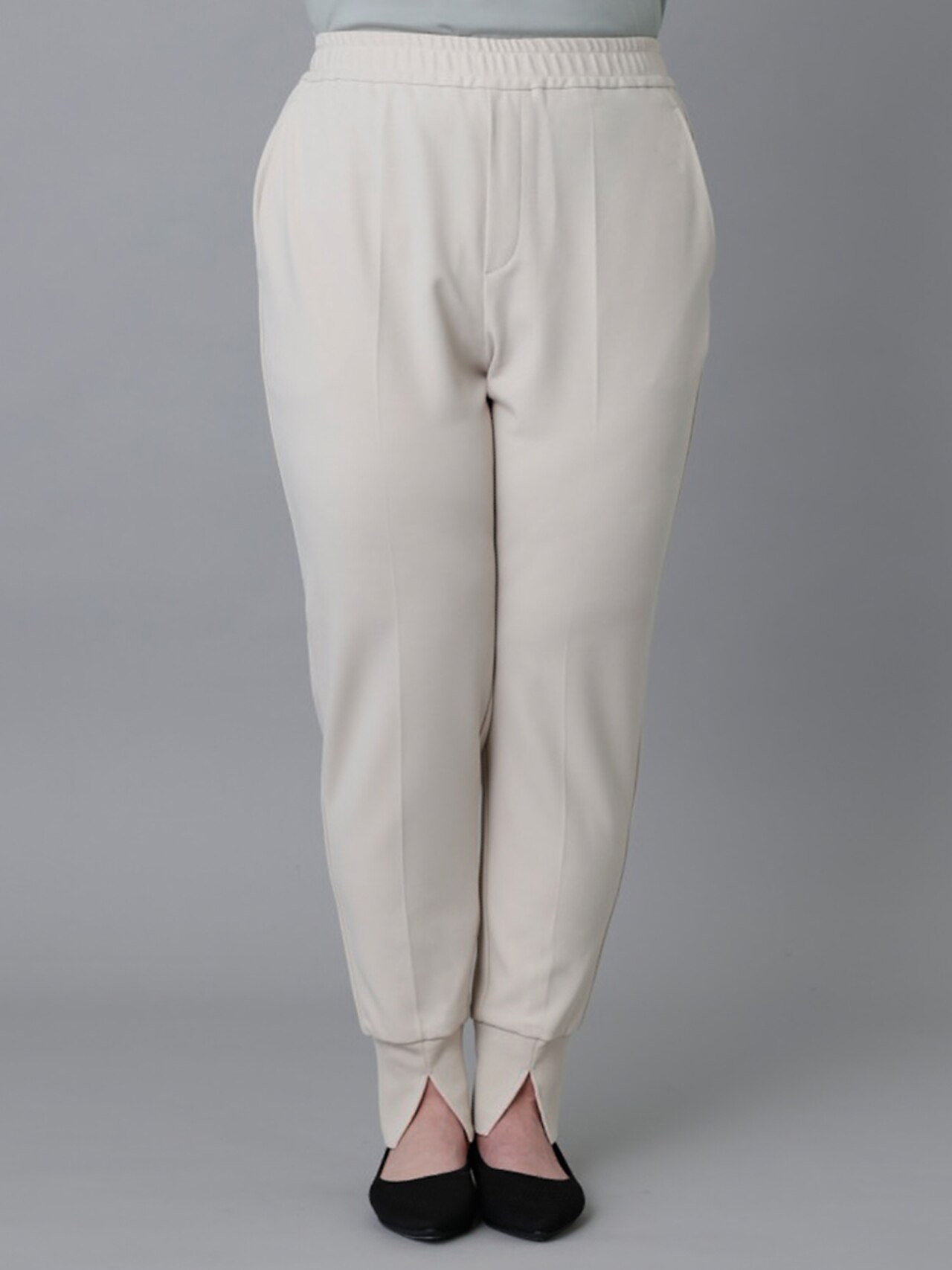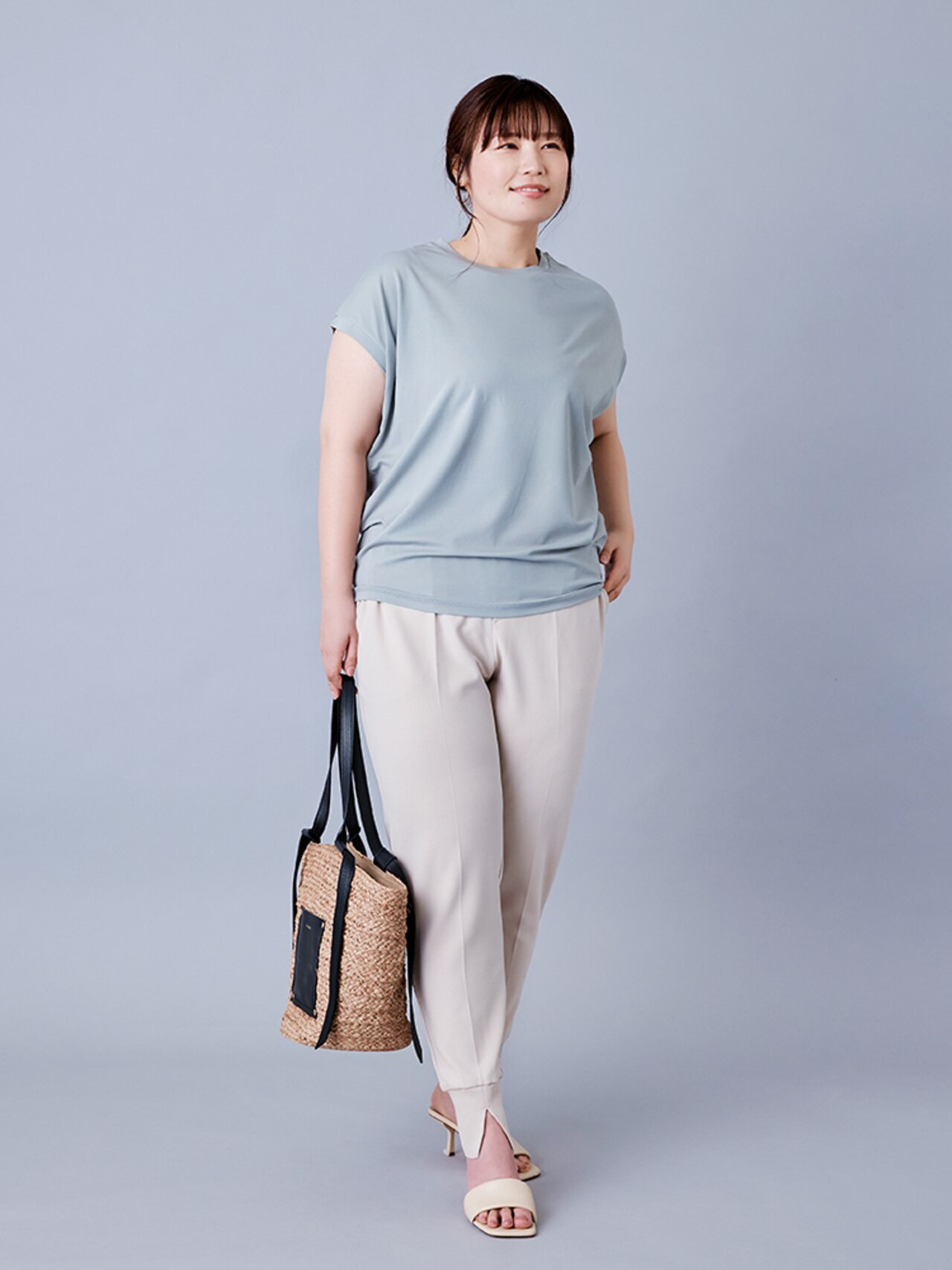 裾スリットが足元をすっきりと見せてくれます。シワになりにくいのもデイリー使いできるポイント。