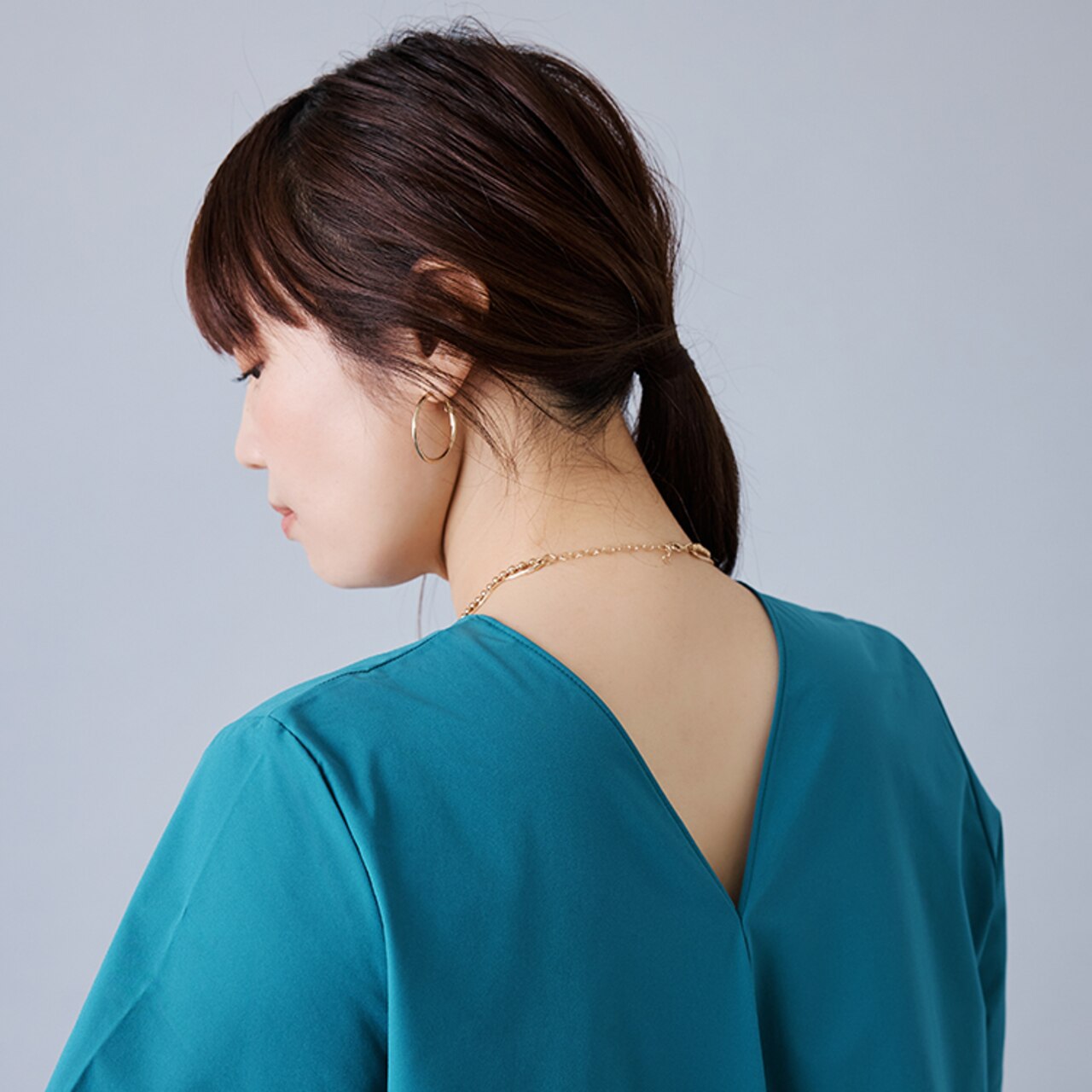 05. ヘアはアップスタイルにすることで、顔周りをすっきり見せるのがおすすめ