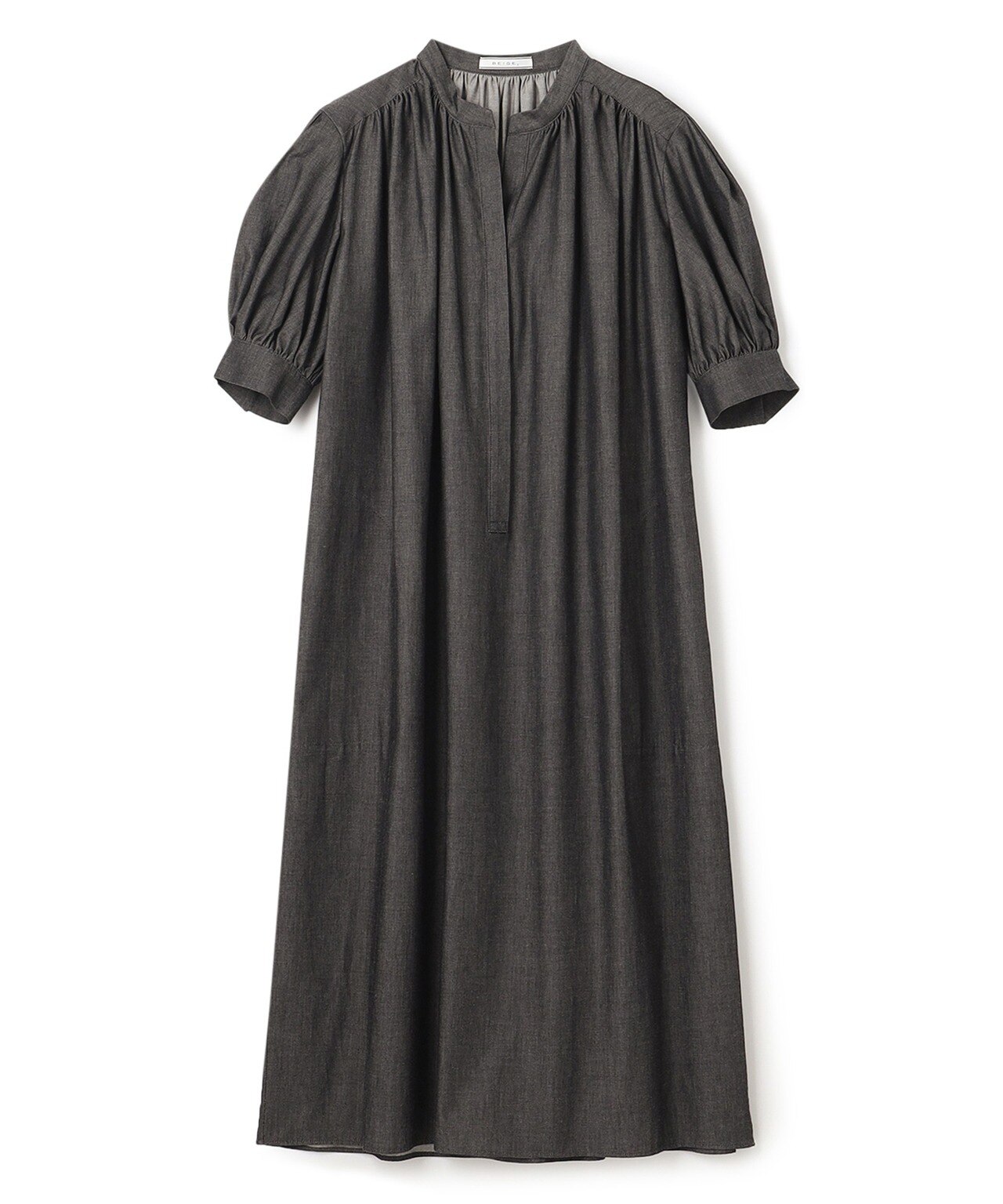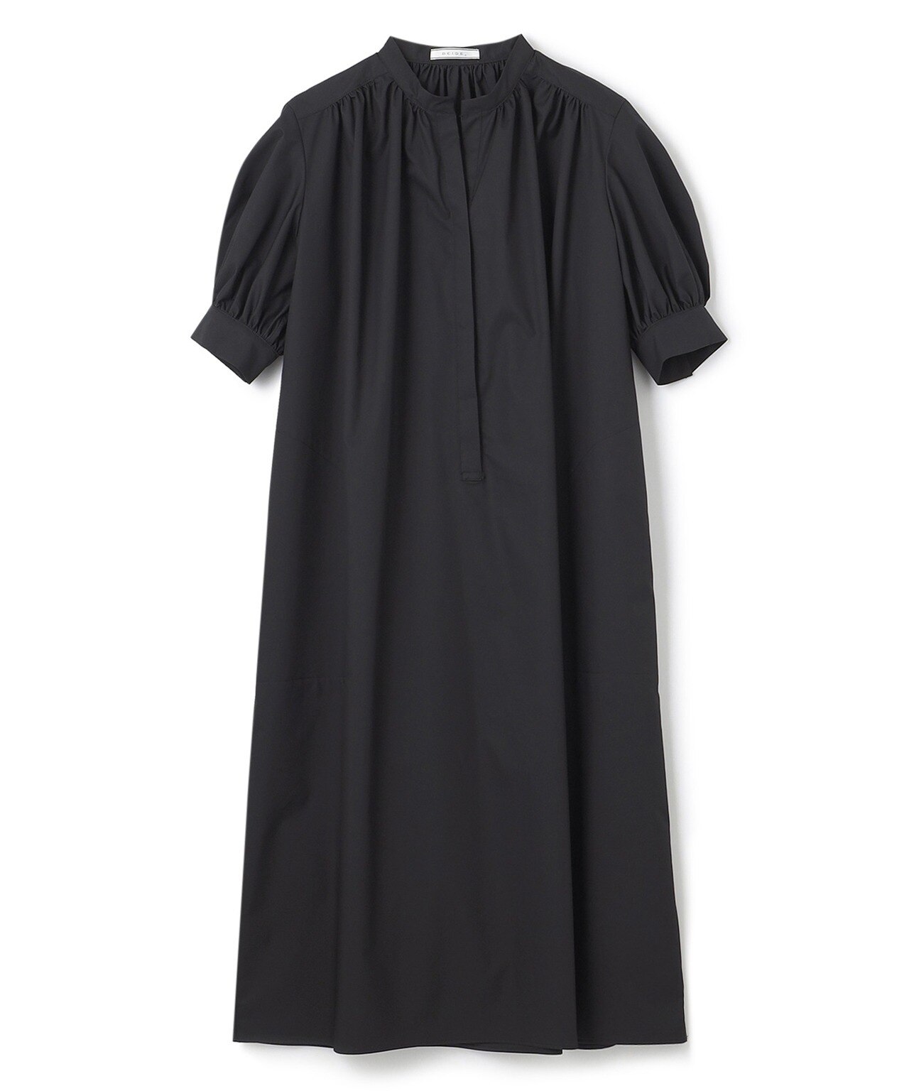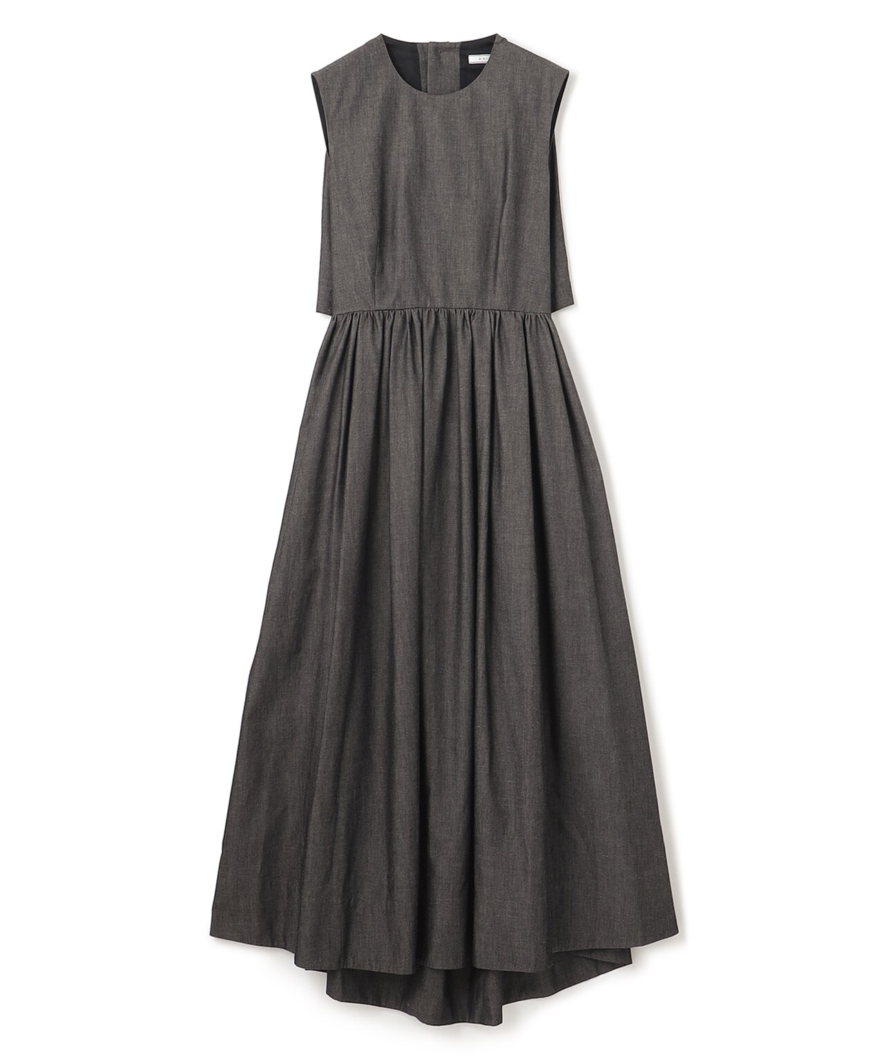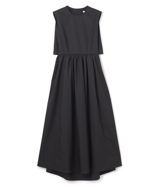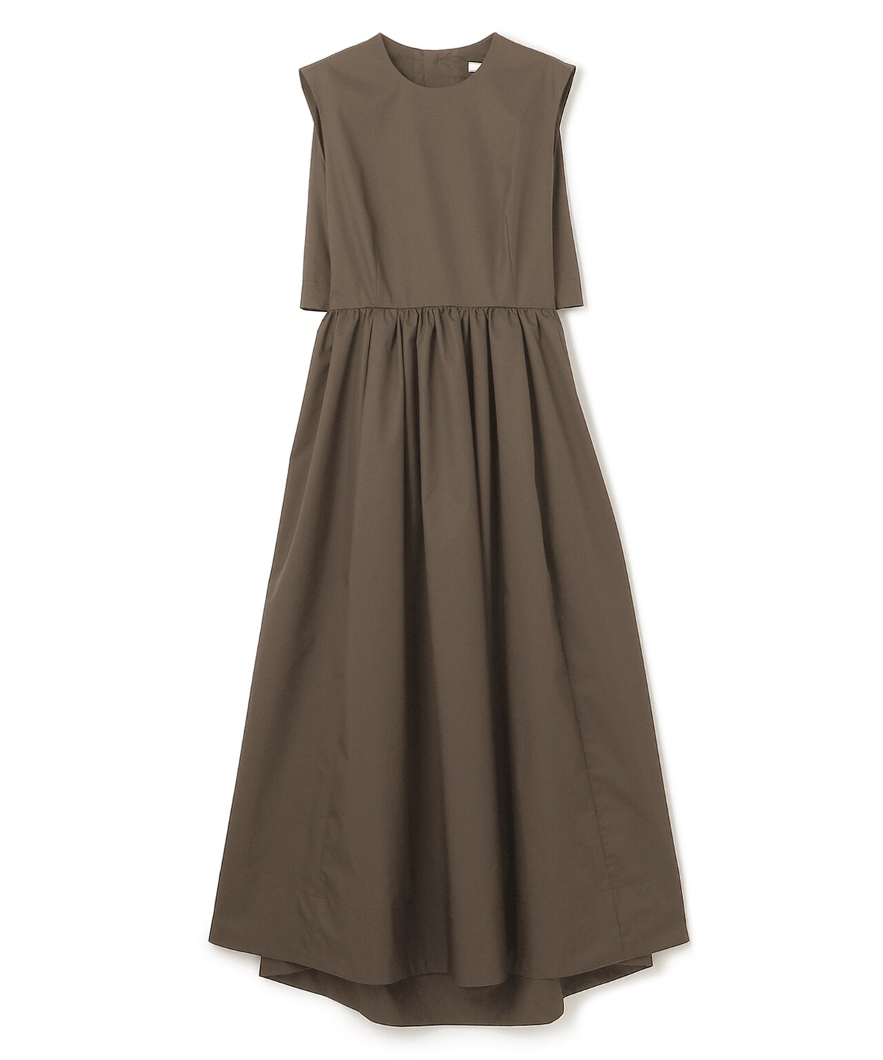 すっきりとしたシルエットが特徴的なドレスはバックスタイルに注目。深めに重なった生地から、さり気なく見える背中が大人の肌見せにぴったり。スカート部分はウエストがゴム仕様だから、着心地もストレスフリー。
