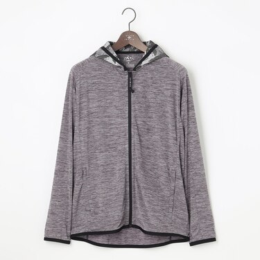 ■原料にレギュラーポリエステル糸とカチオン糸を交編し、天竺を編み上げ染め分けることによってメランジを表現したJOSEPH ABBOUD MOUNTAINオリジナル素材です。