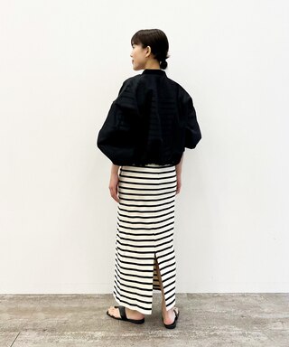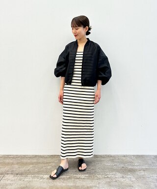 ジップアップかつ裾を絞るタイプはカジュアルな印象になりがちで敬遠していたのですが、これは素材のツヤと丸みのあるシルエットのおかげで、手持ちの中でもだいぶキレイめなワンピースとも相性バッチリでした。