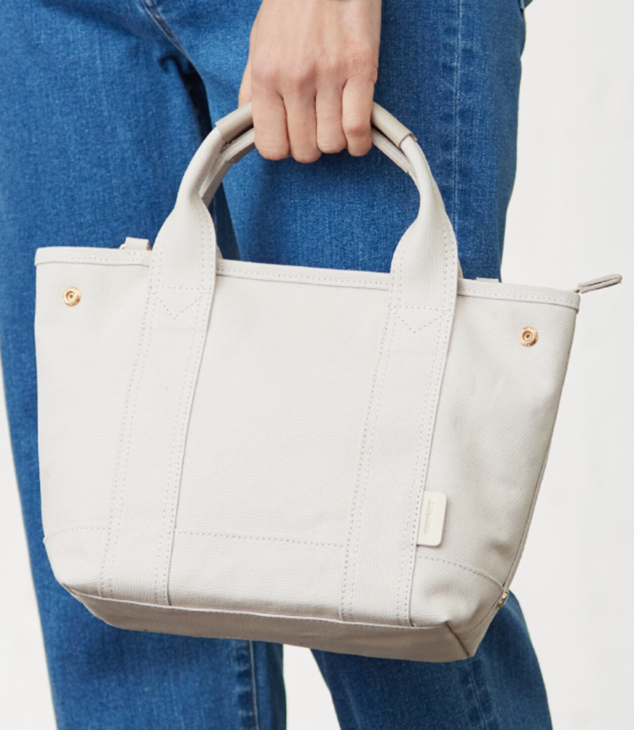 サイドのホックでデザインが変わるキャンバスバッグ。肩掛けが出来るショルダー付の2way仕様、荷物が少ない時はサイドのホックを留めて、台形型のフォルムのコーディネートに馴染みやすいミニトートとしても◎表側には撥水加工を施しており、雨の日のお出かけも安心。シンプルでどんなコーデにも合わせやすく、オールシーズン長く使えるトートバッグ。