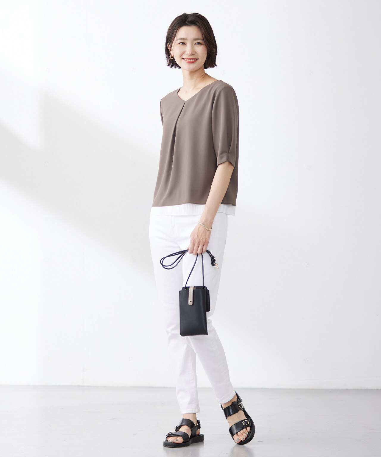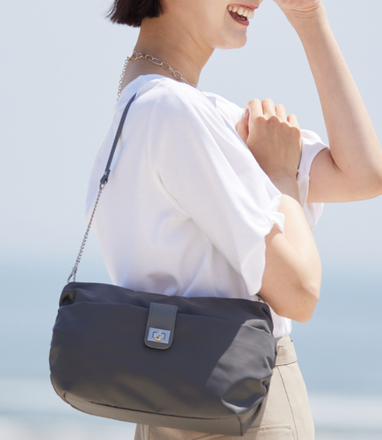 幅広いコーディネートに合う、シンプルデザインのショルダーバッグ