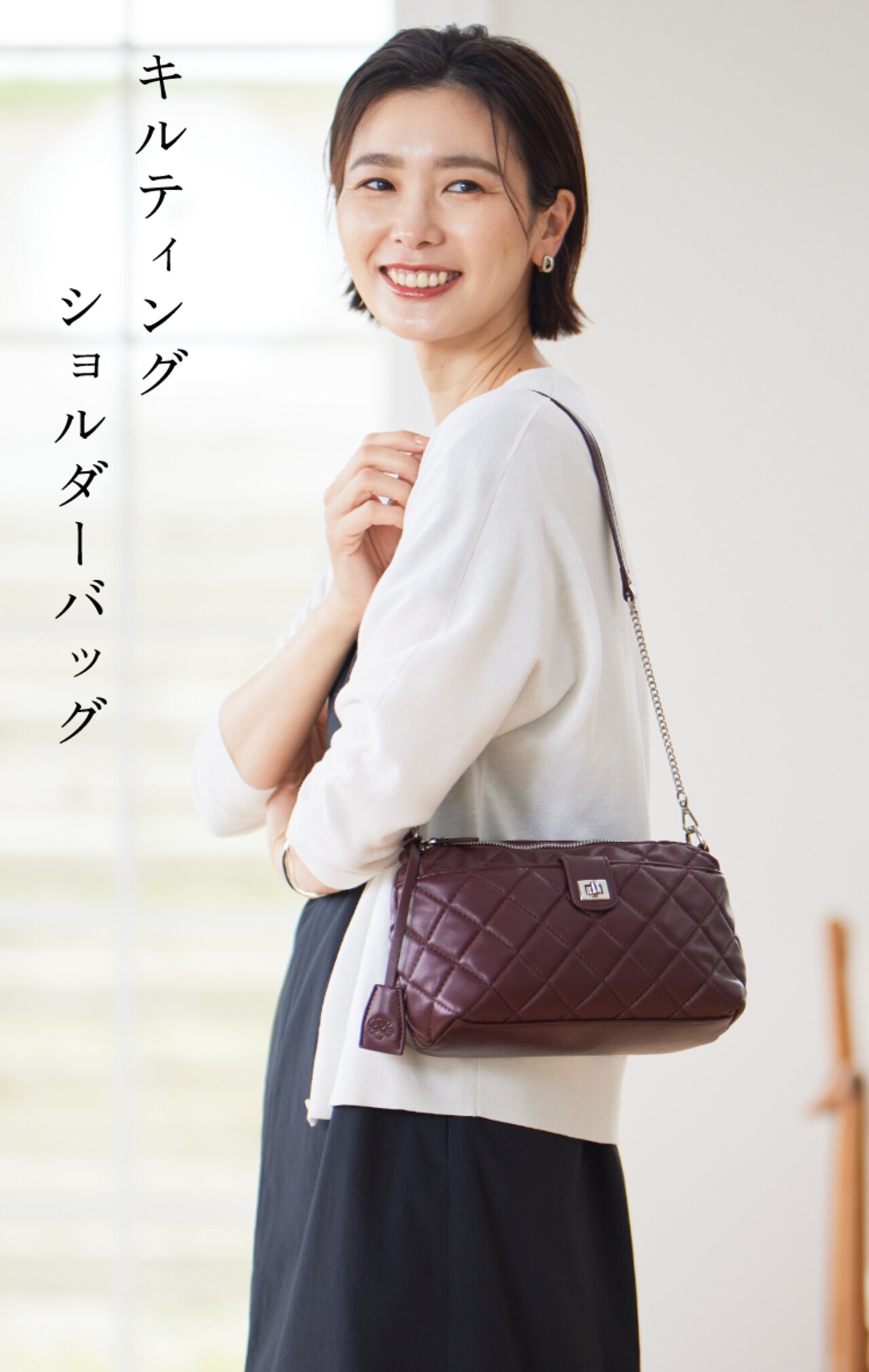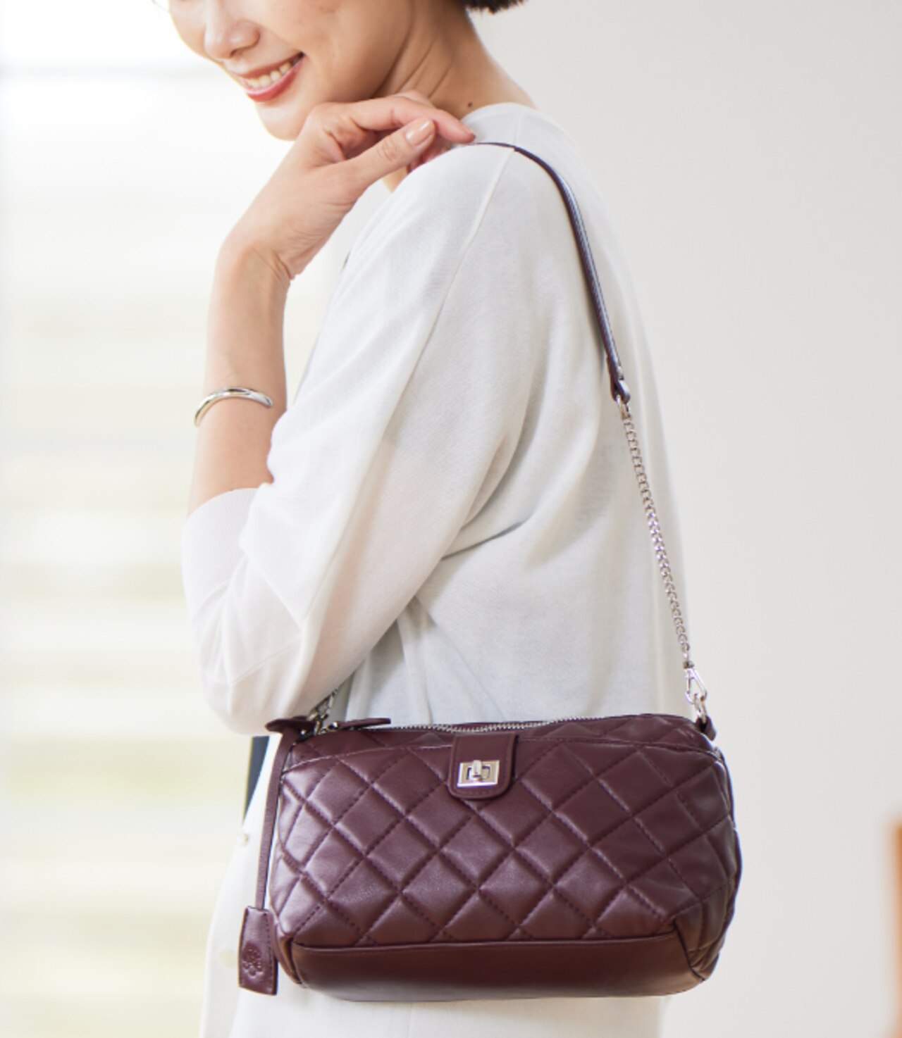 軽さがポイント、上品なキルティングショルダーバッグ
