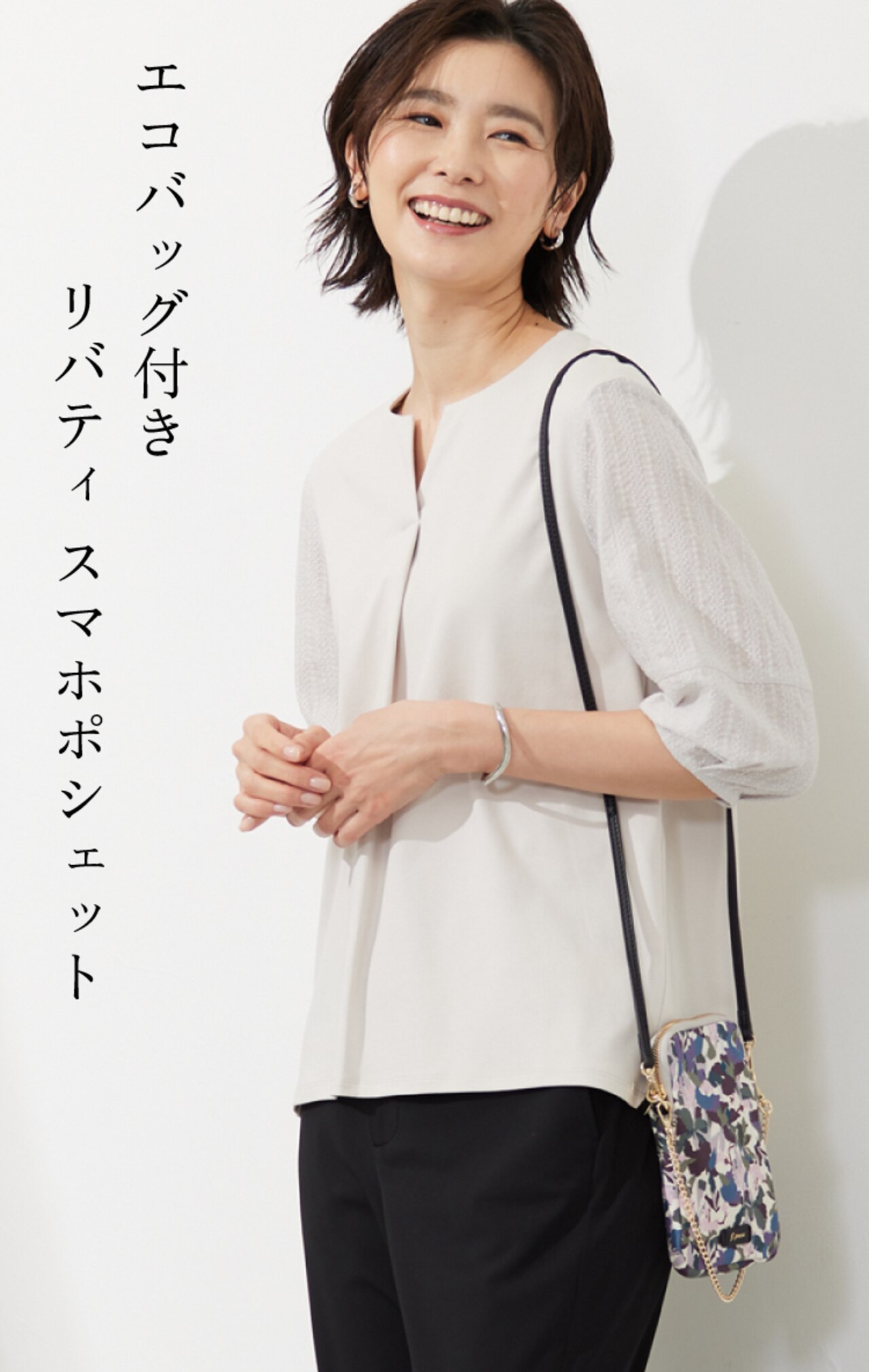 華やかなLIBERTY柄が目を惹く、エコバッグ付きスマホポシェット
