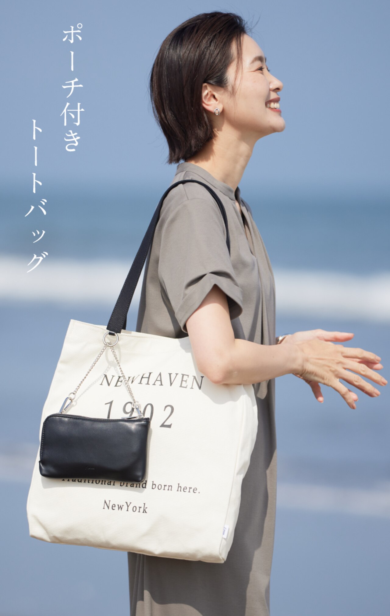 必要なものがすっきりと収まるサイズ感が魅力的なポーチ付きトートバッグ