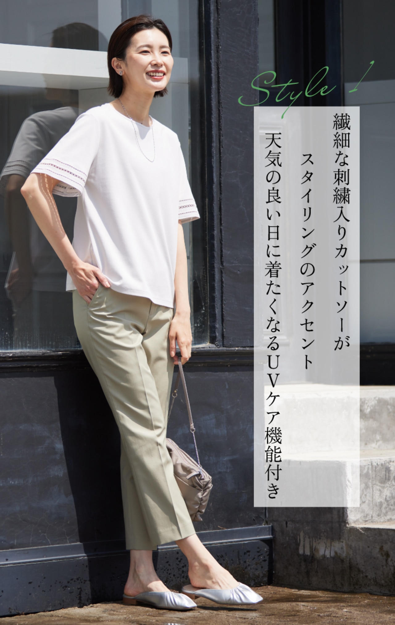 【接触冷感・UVケア】コンパクトコットンスムース 刺繍スリーブ カットソー