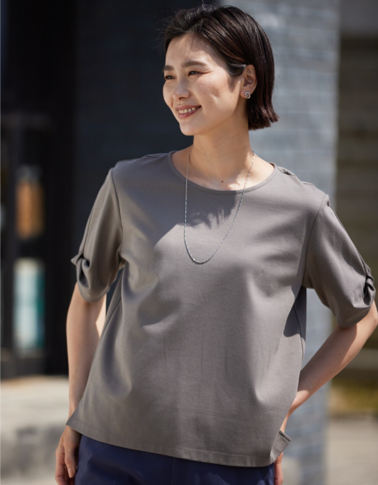 【接触冷感・UVケア】コンパクトコットンスムース ツイストスリーブ カットソー