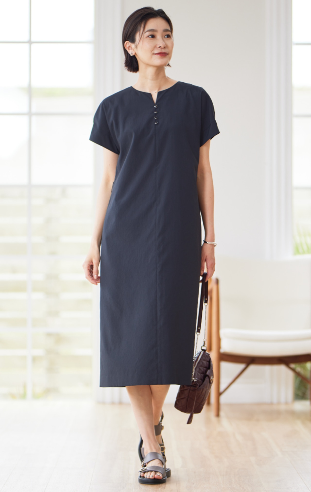 【洗える・イージーケア】ソフトタイプライター フレンチスリーブ ワンピース