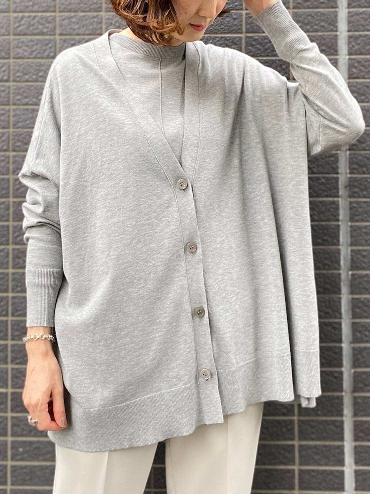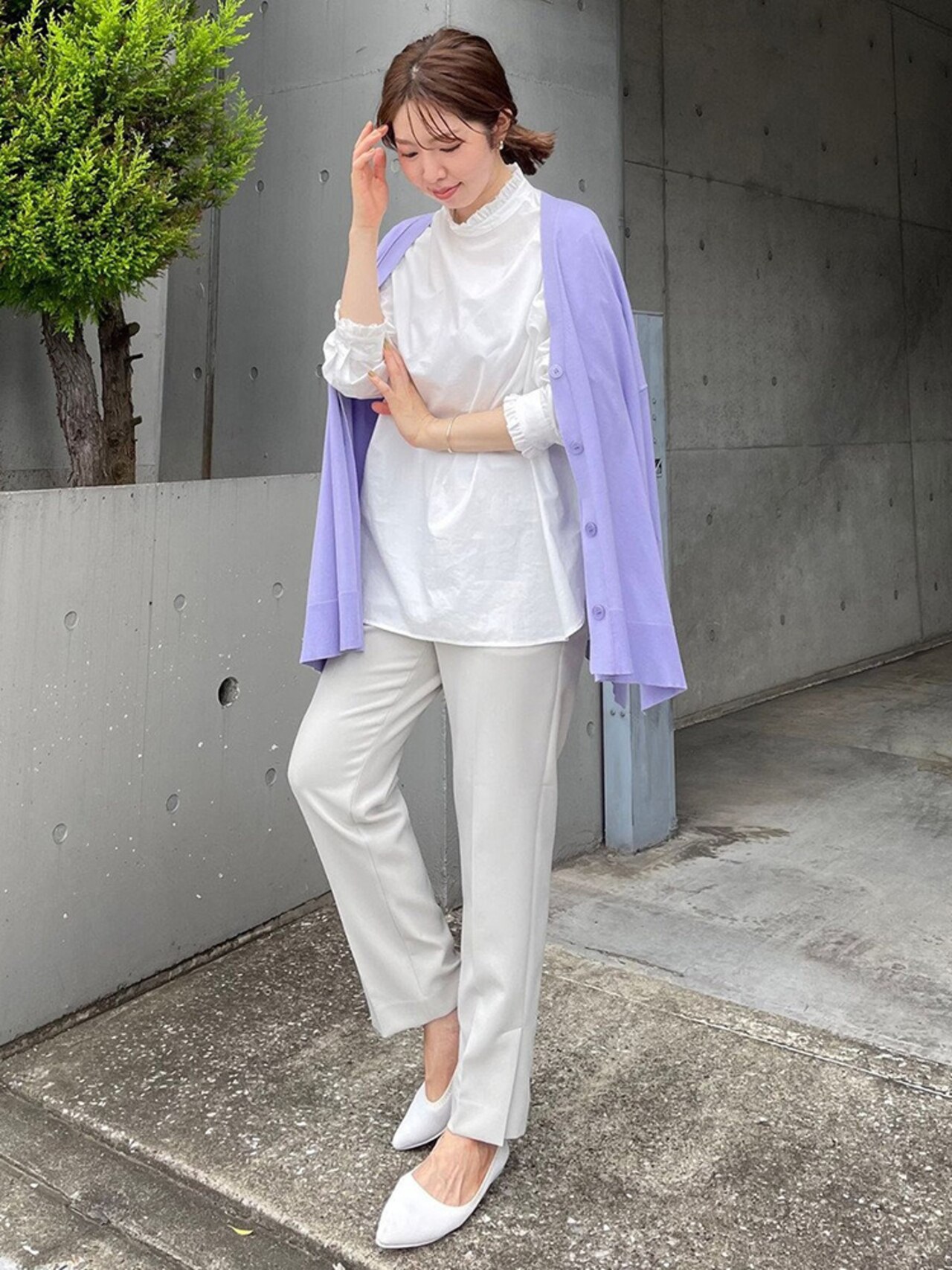 鮮やかなライラックカラーが目を惹くカーディガン。