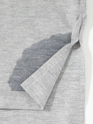 汗染み防止の加工も施しているので、腕周りに空気がこもっても、汗が目立たないのがポイントです。(身長161㎝、Mサイズ)