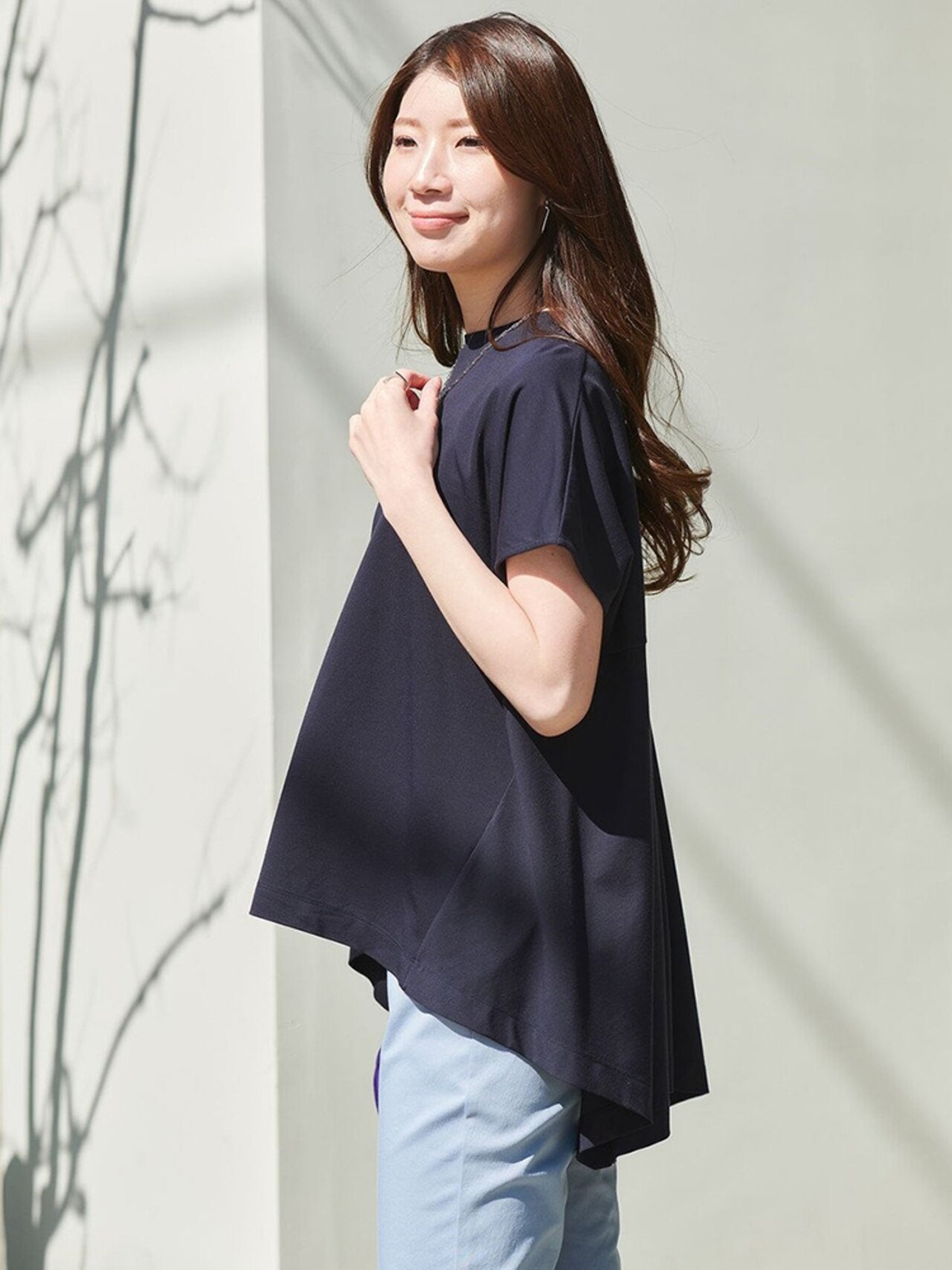 シワになりにくいので、梅雨時期や夏の汗ばむ時期でも、快適に過ごせます!(身長165㎝、Mサイズ)