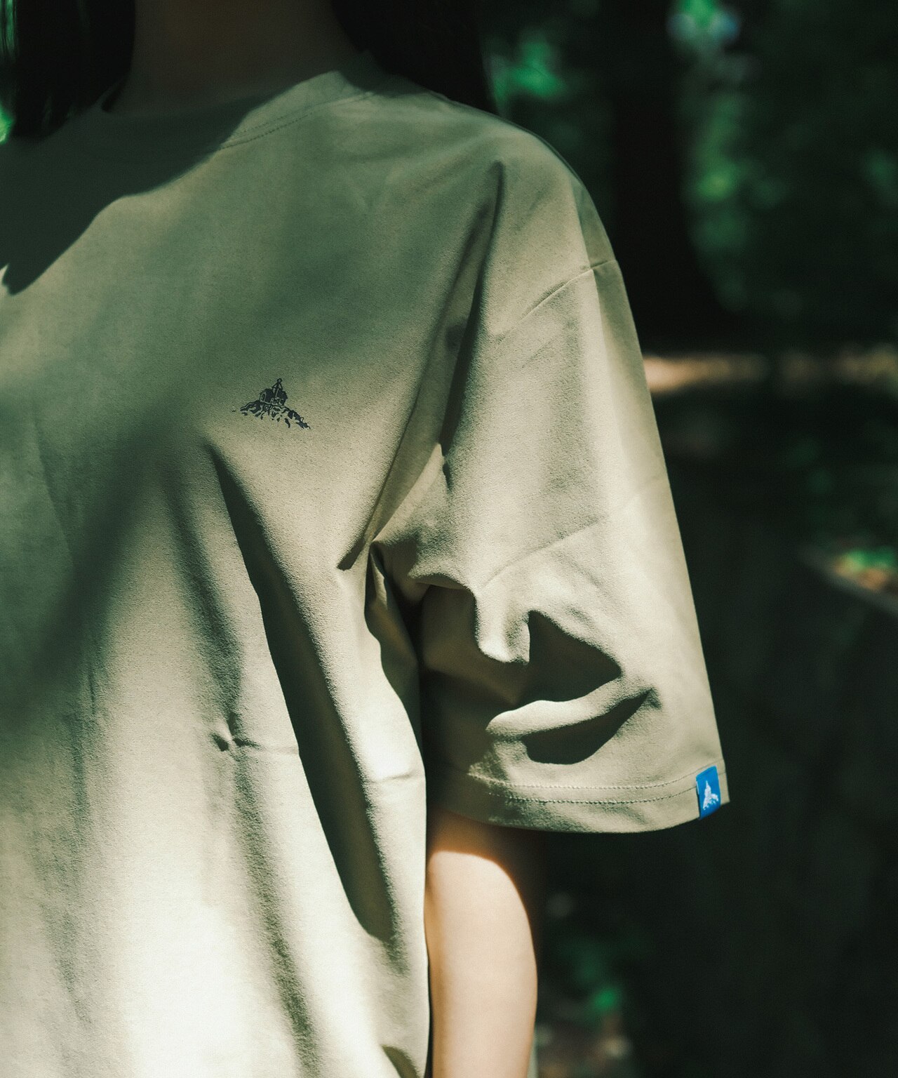 前身頃にブランドロゴ、後身頃にブランドロゴマークを大きくプリントした半袖Tシャツ。どんなアイテムとも馴染みやすいアース系の落ち着いたカラーで展開。