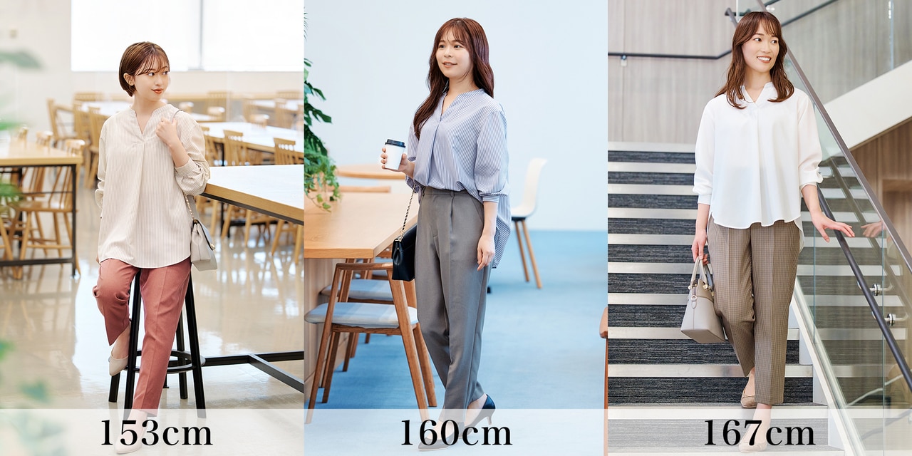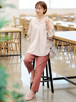 オフホワイトは襟部分だけ微配色になっているのがポイント。きちんと感があるのでジャケットのインにも重宝するブラウスです。