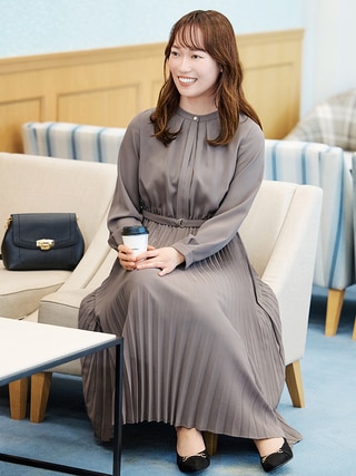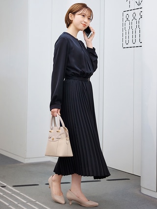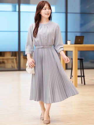 オフィスでもさりげなく着映えが狙えるデザインで着るだけでサマになります。あれこれ考えずに一枚で決まるワンピースは通勤スタイルにぴったりですね。