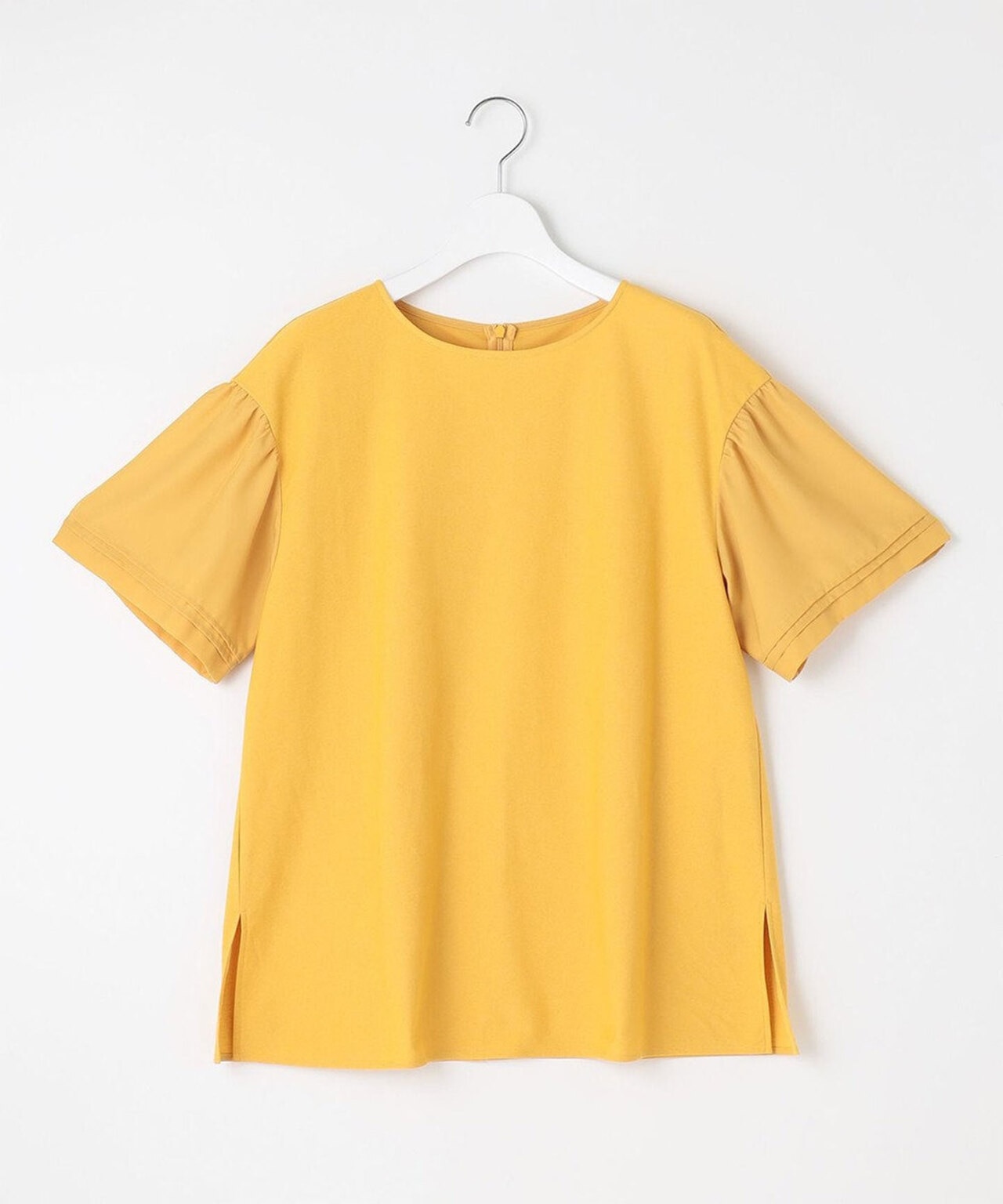 ワントップスで映える、ラッフルスリーブトップス。ウォッシャブルで吸水速乾、UVカット機能を持たせた今の季節にぴったりな1着です。やわらかな印象のシャンパンベージュはONにもOFFにも活躍するカラーです◎
