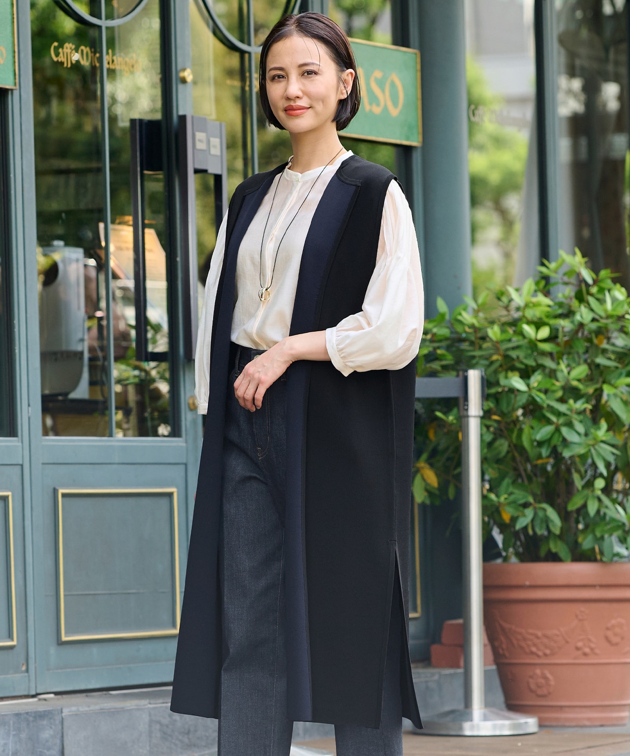 シーズンレスで活躍するニットベスト。トップスとボトムのワンツーコーデに飽きたらニットベストで鮮度をアップ。簡単におしゃれ見えを叶えてくれます◎