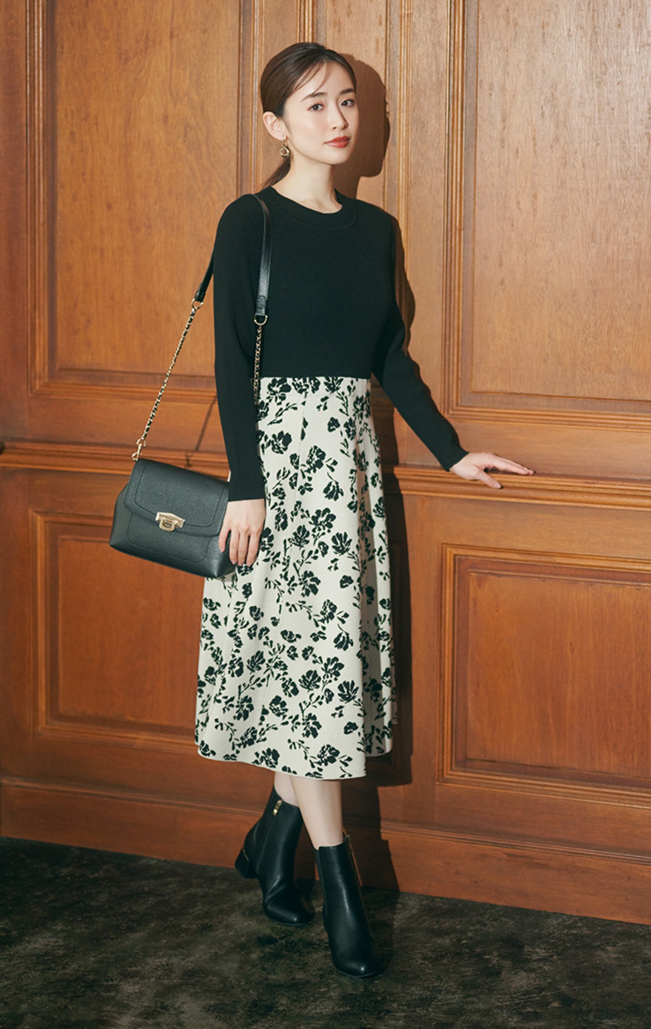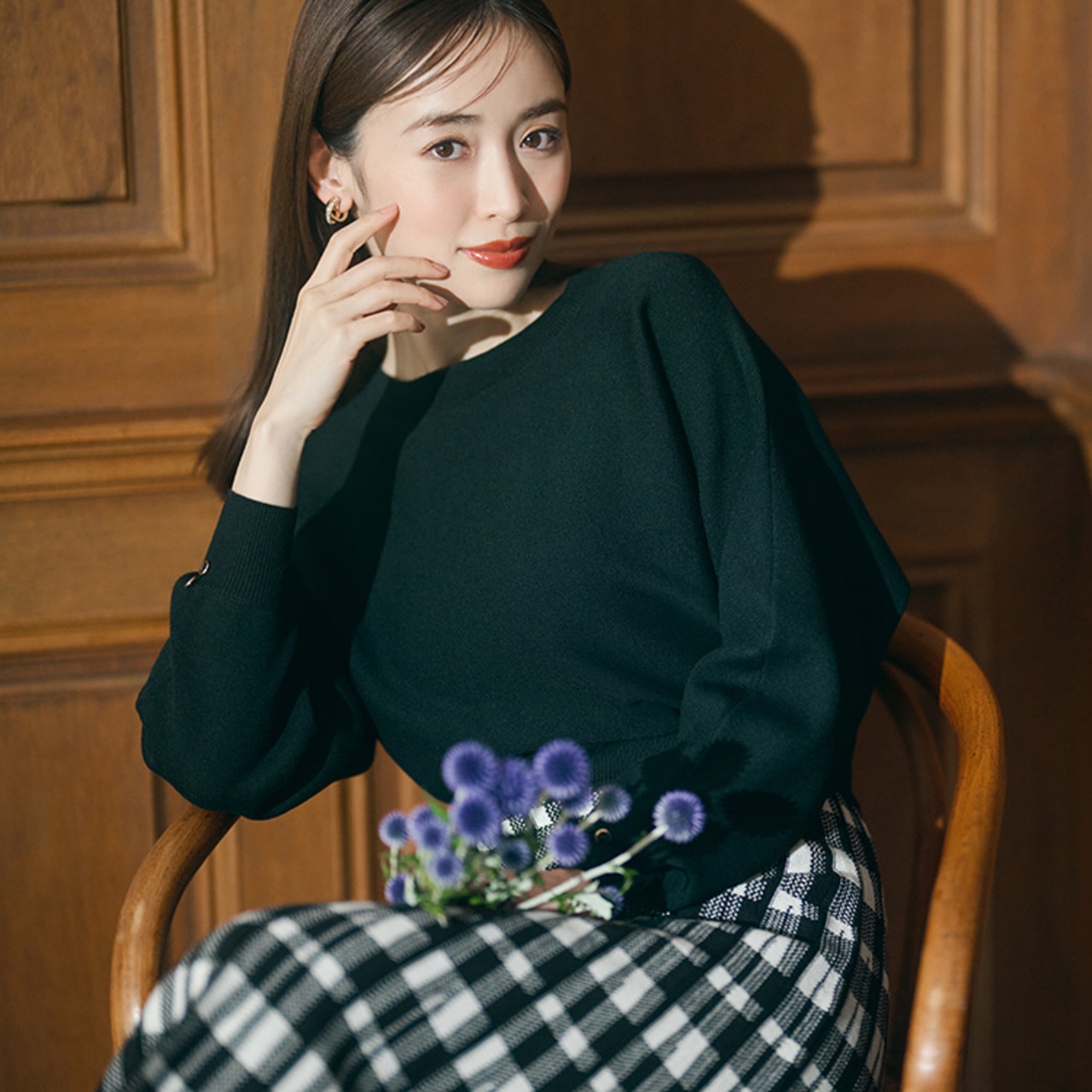 トレンドを意識するなら、キレイ見えするクラシカルなニット素材がオススメです。お気に入りの1着を見つけて。