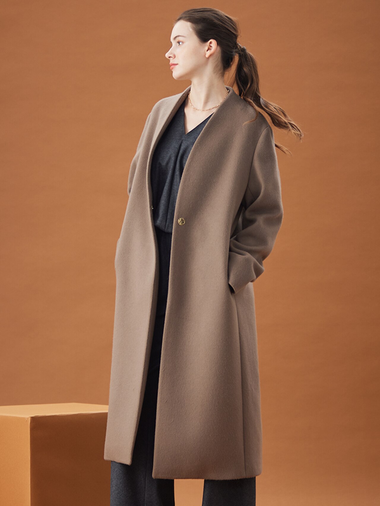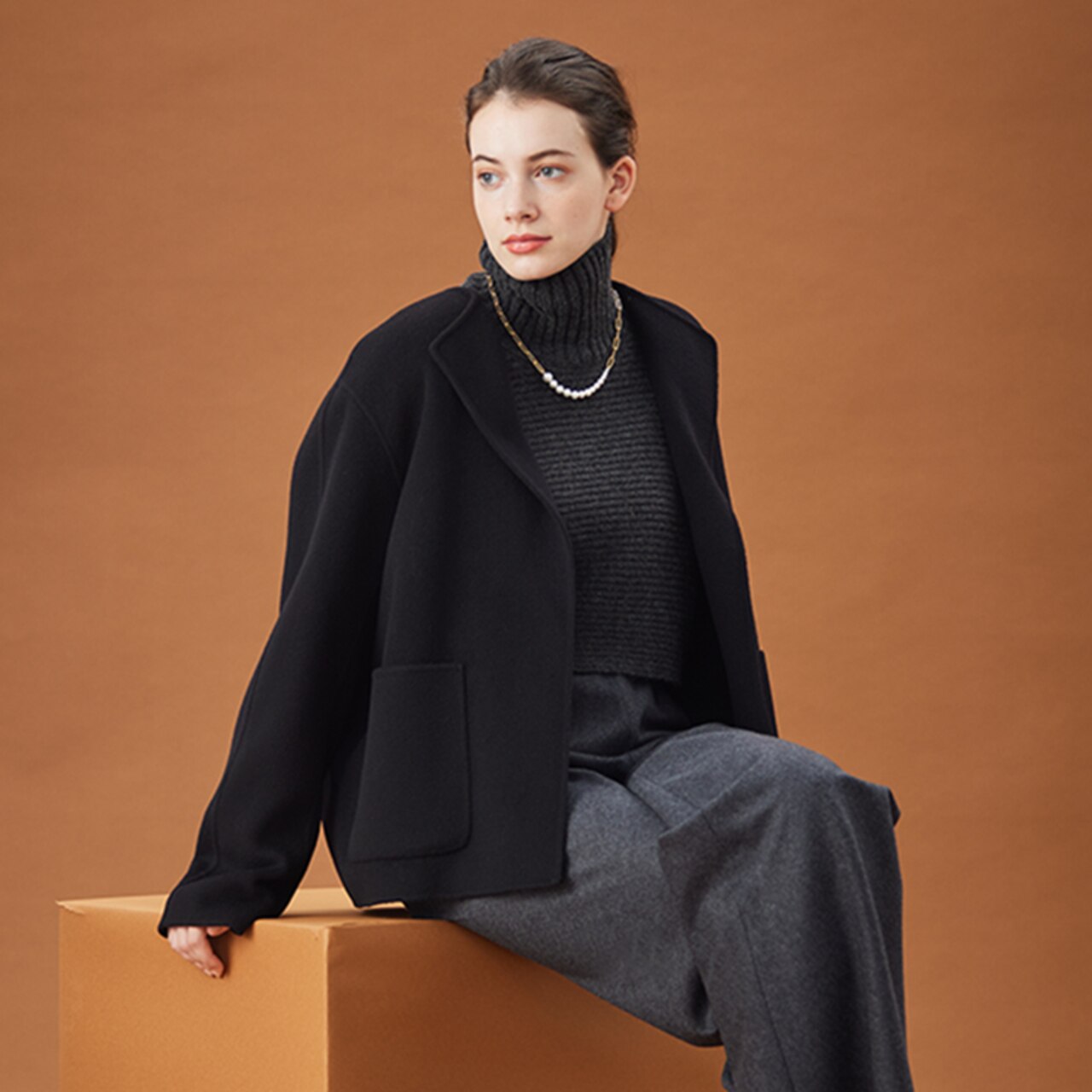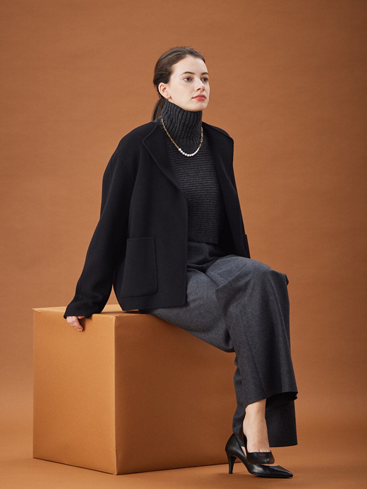 ダブルフェイスのショートコートは、さっと羽織れてきまりが良いBUCI / ショートコートBUCI / ショートコートBEIGE,¥85,800(税込)RIGNY / タートルネックニットRIGNY / タートルネックニットBEIGE,¥29,700(税込)※パンツは10月販売予定