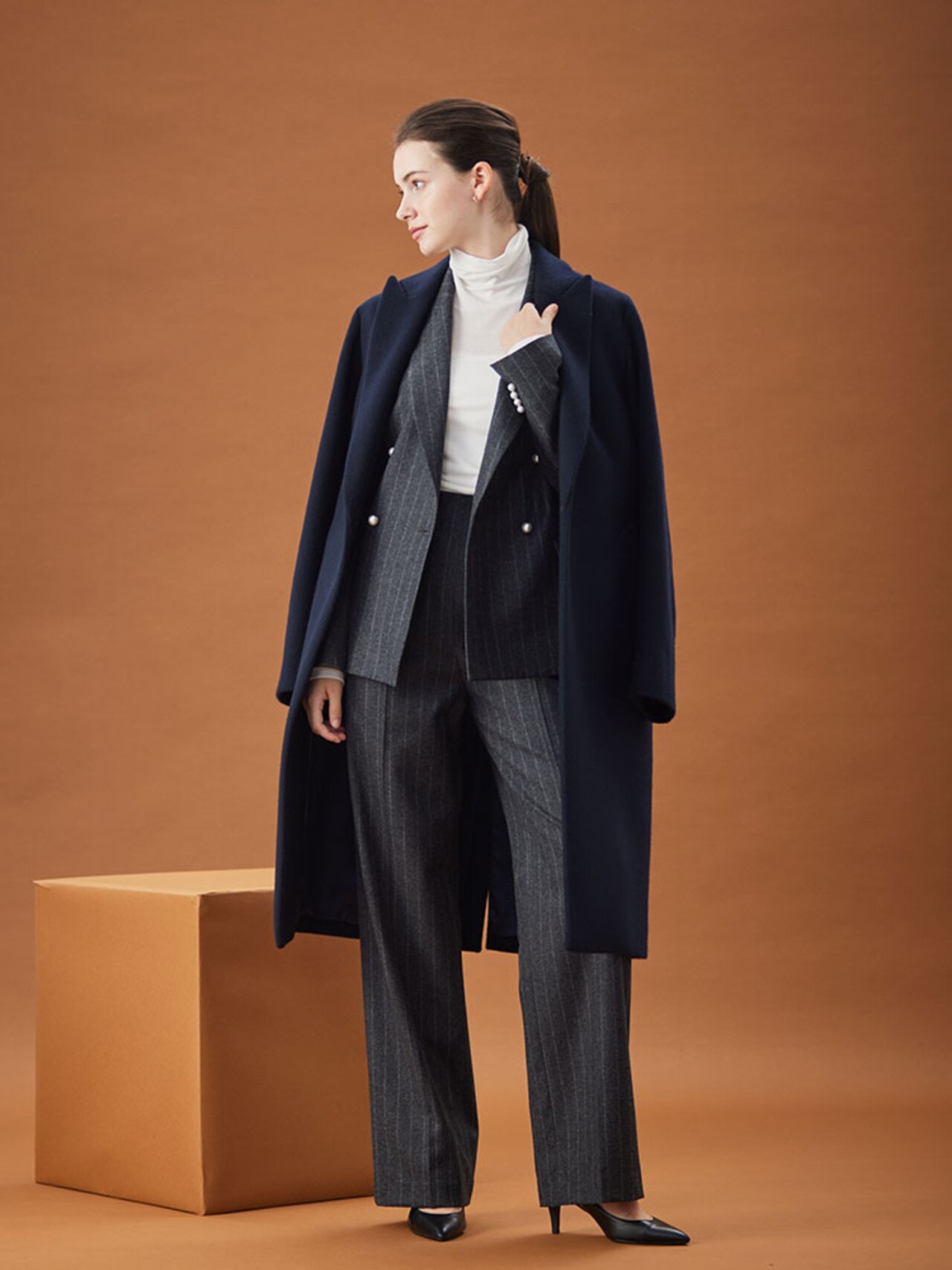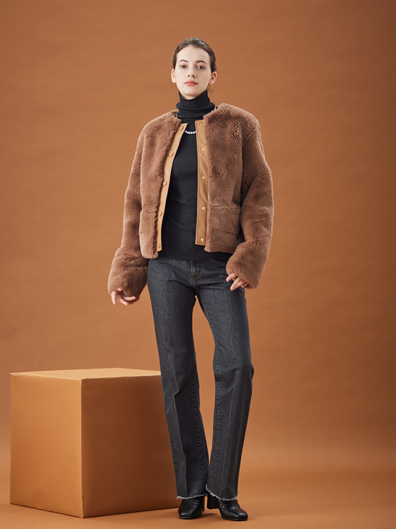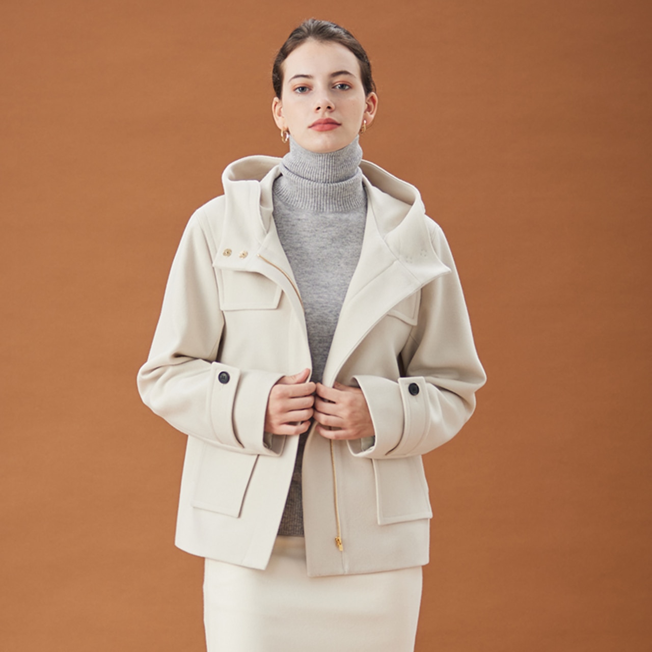 ダブルフェイスのショートコートは、さっと羽織れてきまりが良いBUCI / ショートコートBUCI / ショートコートBEIGE,¥85,800(税込)RIGNY / タートルネックニットRIGNY / タートルネックニットBEIGE,¥29,700(税込)※パンツは10月販売予定