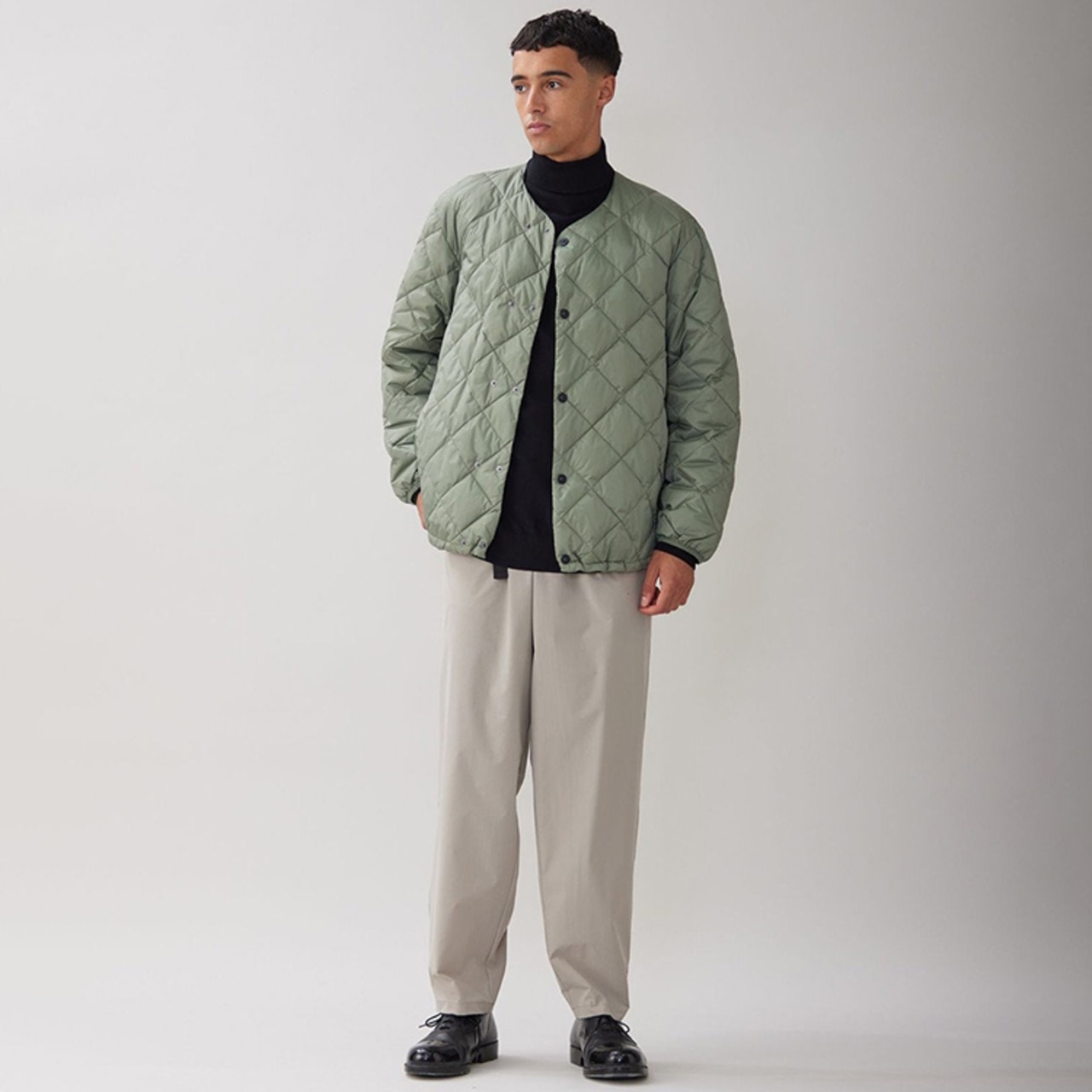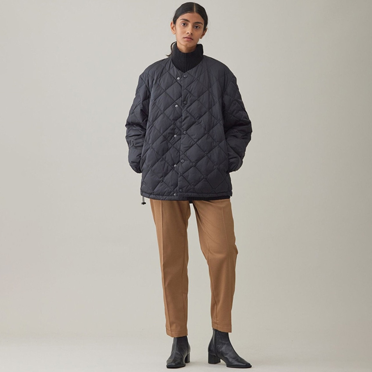正面のドット釦を留めればアウターとして、一列奥のドット釦で留めればシルエットが一段小さくなりインナーダウンとしてもお使いいただけます!