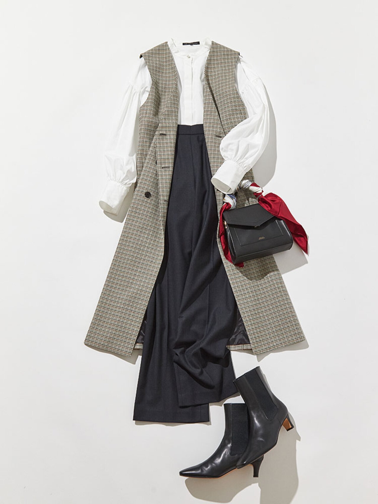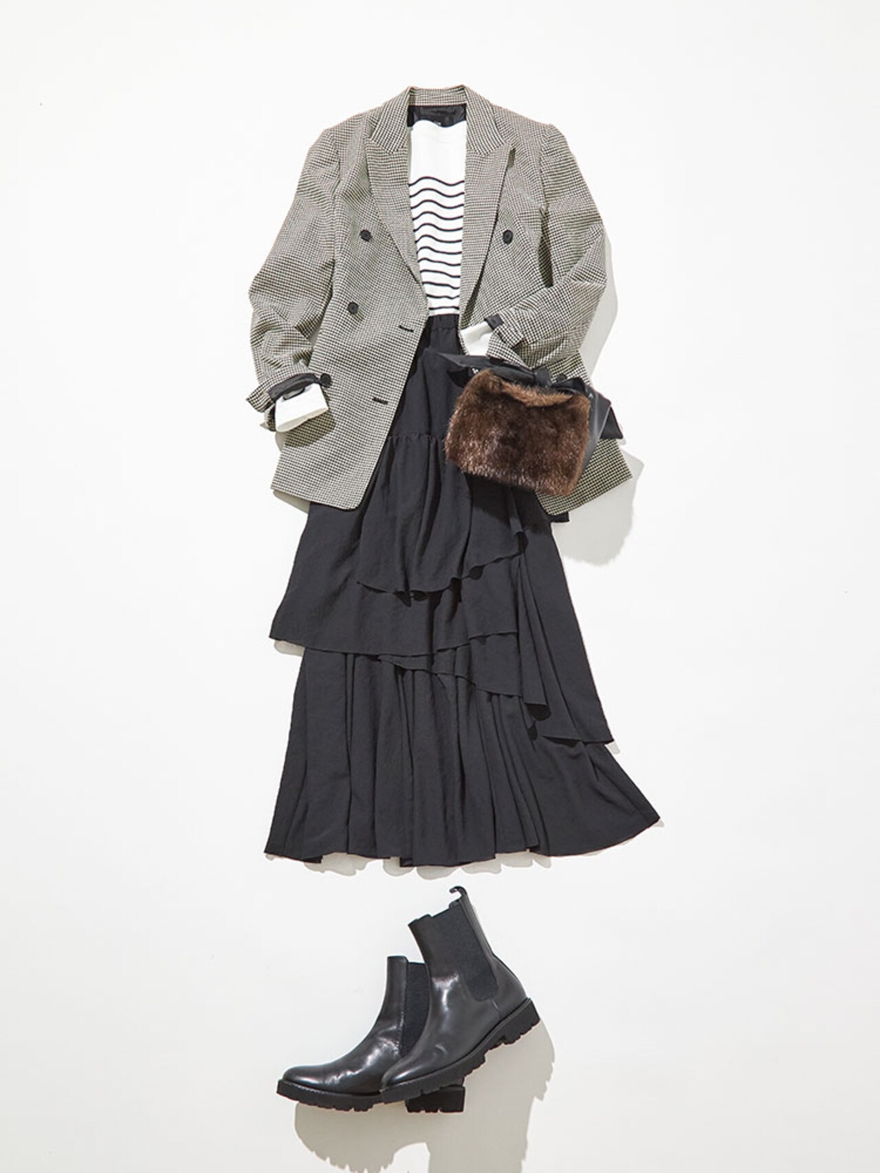 シャープなピークドラペルとコンパクトなシルエットでマニッシュな印象を保ちつつ、チェック柄になることで程よくカジュアルなテイストに。本あき仕様で細部まで丁寧に仕立てたこだわりのジャケットは、オンスタイルはもちろんデイリーにも着こなせる一着。